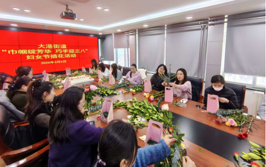 为庆祝第116个“三八”国际妇女节,丰富女性职工精神文化生活,提升审美素养与生活情趣,市北区大港街道于3月6日下午举办了“巾帼绽芳华·巧手迎三八”主题插花活动,大家欢聚一堂,在花香与笑语中共度节日,展现新时代女性的优雅风采与蓬勃活力。街道办事处相关领导及全体妇女职工参加活动。