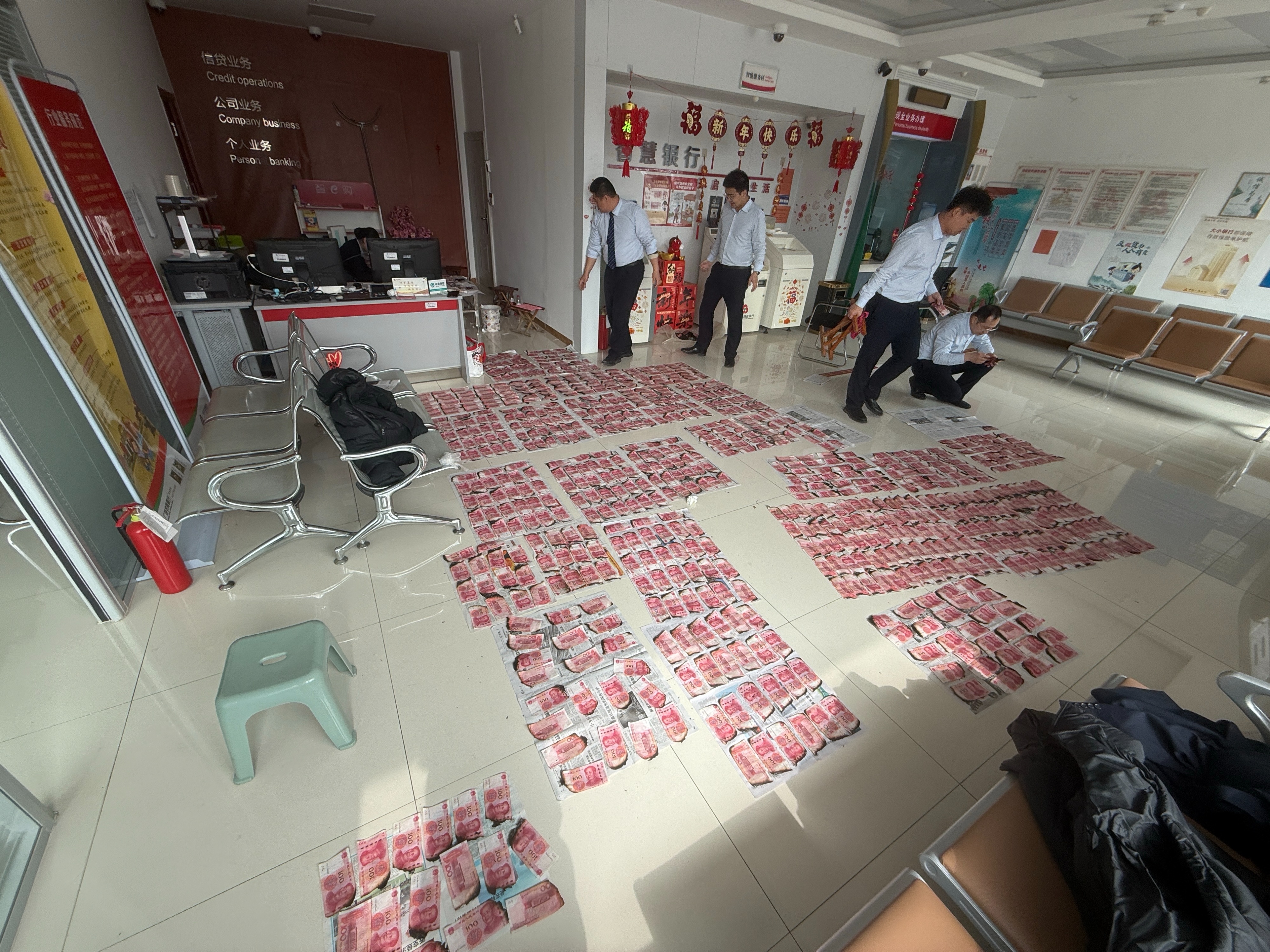 超市失火23万现金变“火烧币”,广饶农商行14人连熬2天,拼回20万血汗钱!