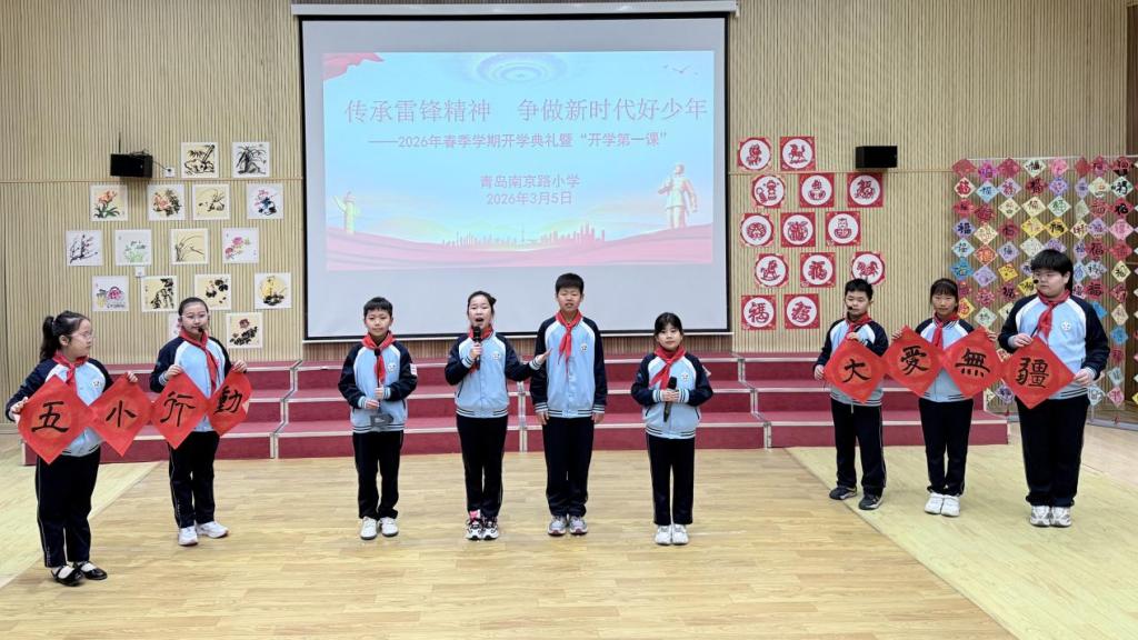3月5日,青岛南京路小学隆重举行“传承雷锋精神,争做新时代好少年”2026年春季学期开学典礼暨“开学第一课”。