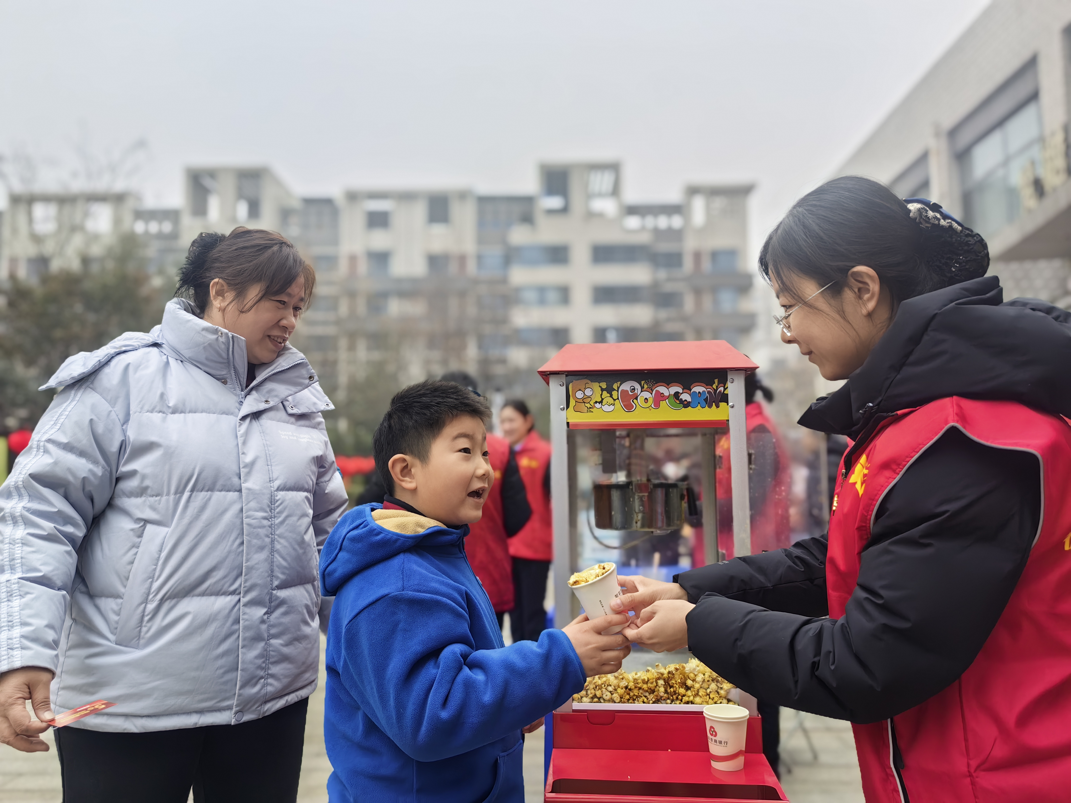活动现场布置得格外温馨,红灯笼高高挂起,趣味灯谜挂满长廊,涵盖金融知识、党建常识、民俗文化等多个领域,既具知识性又富趣味性。党员志愿者们化身“服务专员”,现场制作爆米花,分发给在场的小朋友们,一边引导居民有序猜灯谜、领奖品,一边热情地为大家煮制元宵,热气腾腾的元宵承载着满满的祝福,让社区居民在舌尖上品味浓浓年味。