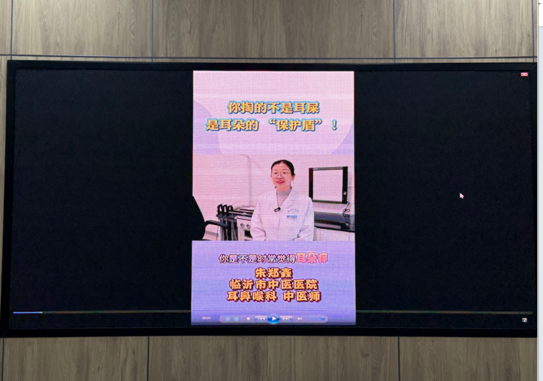 高铁院区名医堂候诊大厅,循环播放该院录制的“你掏的不是耳屎,是耳朵的保护盾”的科普视频,供候诊人员学习。