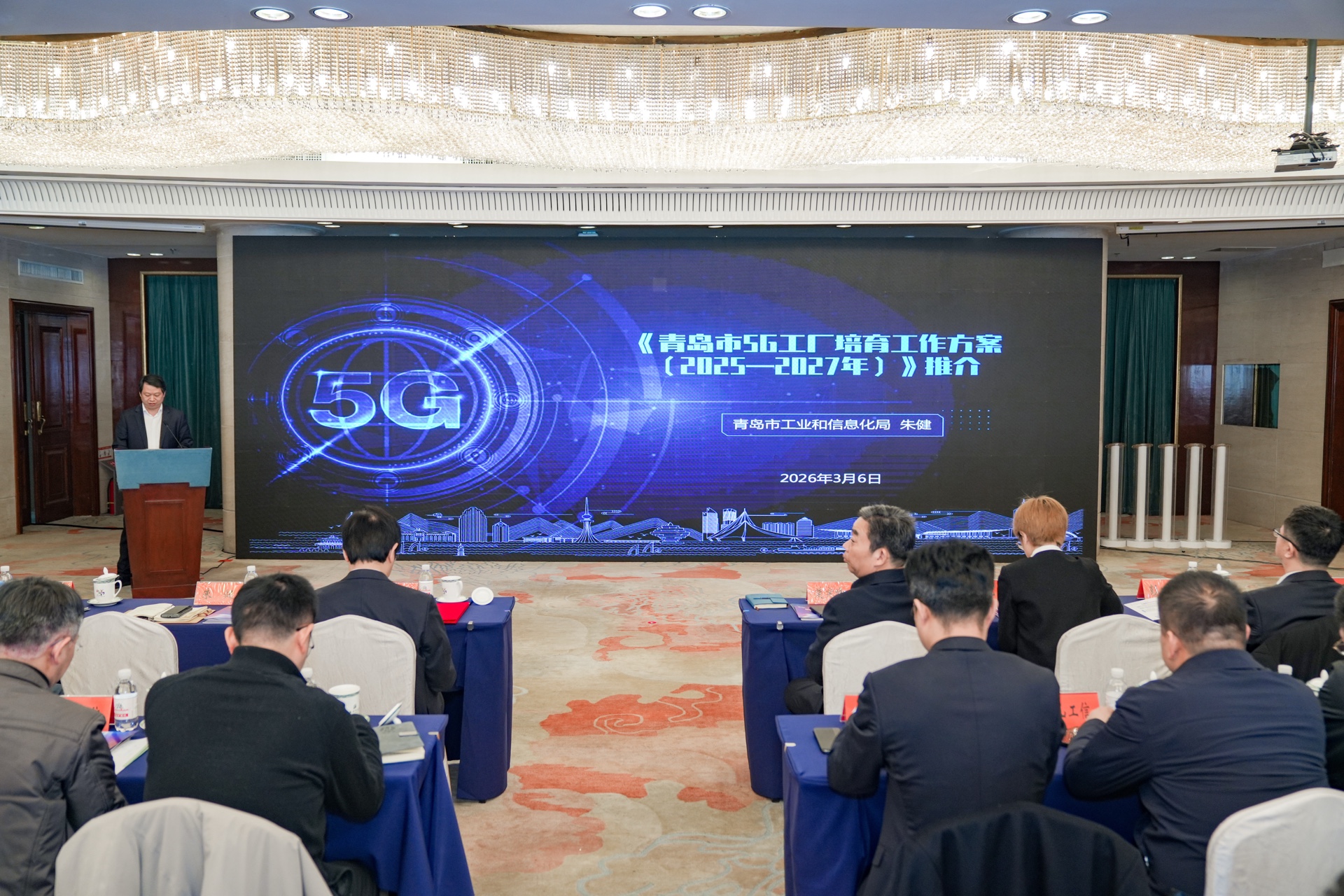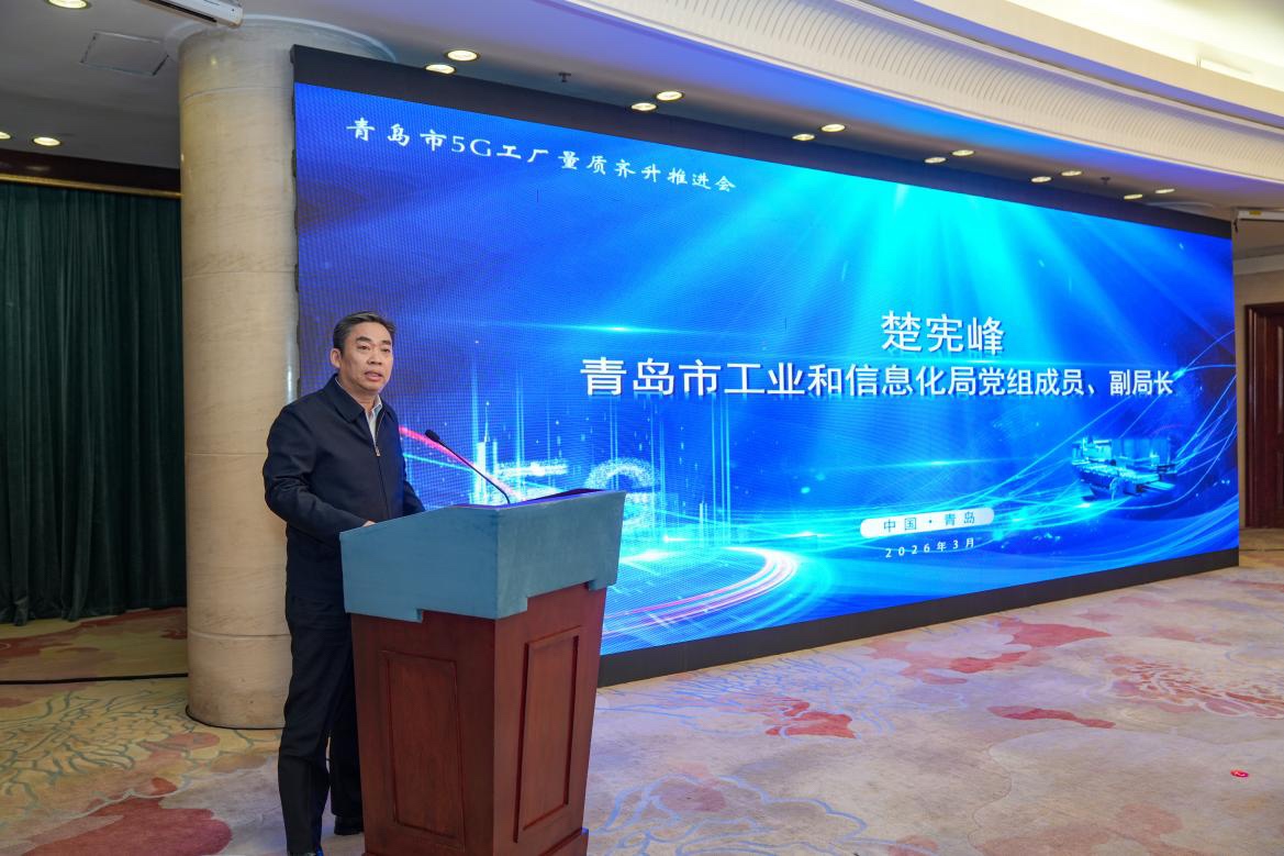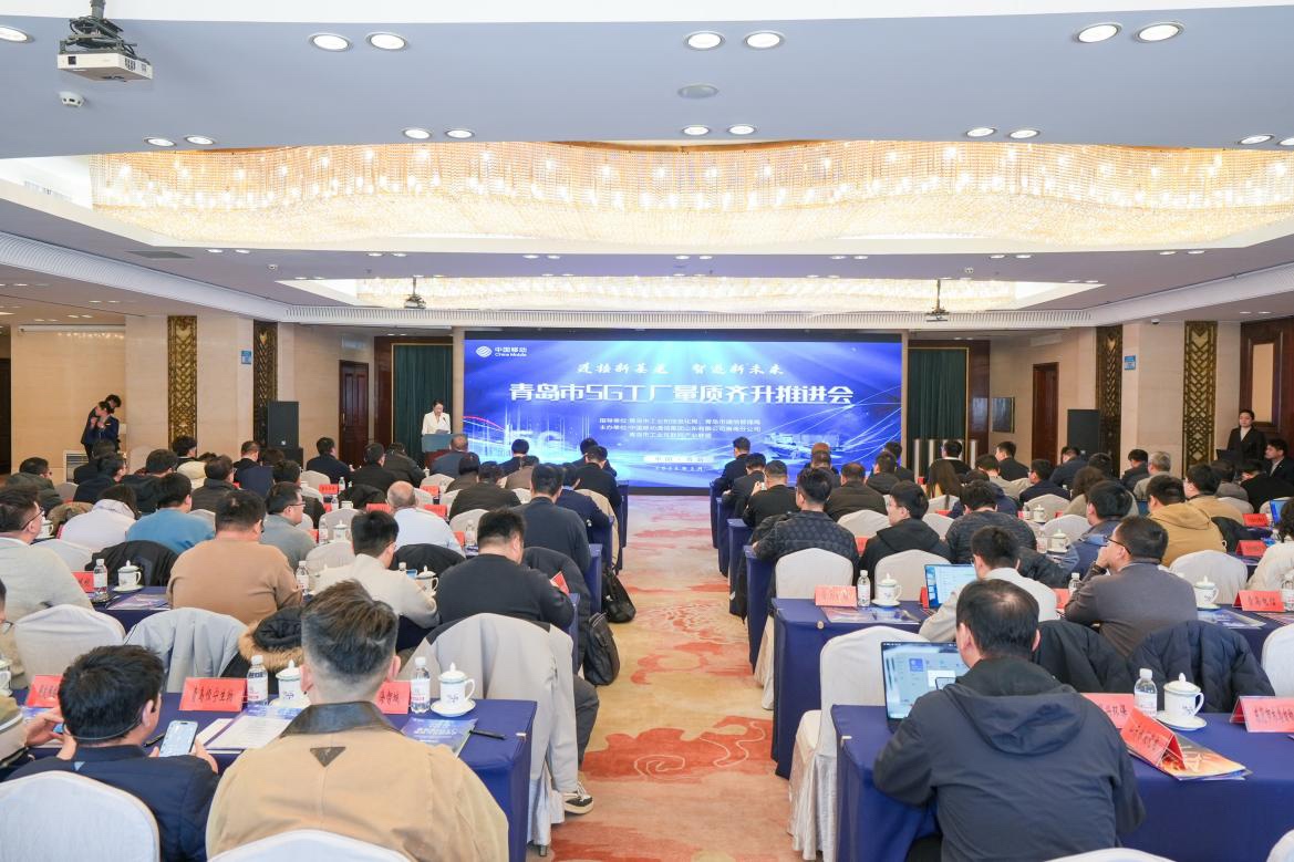 2026年3月6日上午,青岛市5G工厂量质齐升推进会在府新大厦隆重举行。会议以“连接新基建 智造新未来”为主题,旨在推动我市5G工厂建设从“量的积累”迈向“质与量双轮驱动”的新阶段,为青岛市深化“工赋青岛·智造强市”战略、高质量建设“5G+工业互联网”融合应用试点城市注入强劲数字动能。会议由青岛移动公司和青岛市工业互联网产业联盟主办,青岛市工业和信息化局分管领导出席会议并讲话,各区市工业和信息化主管部门相关负责人、基础电信企业、行业专家、5G工厂建设企业代表等200余人参会。