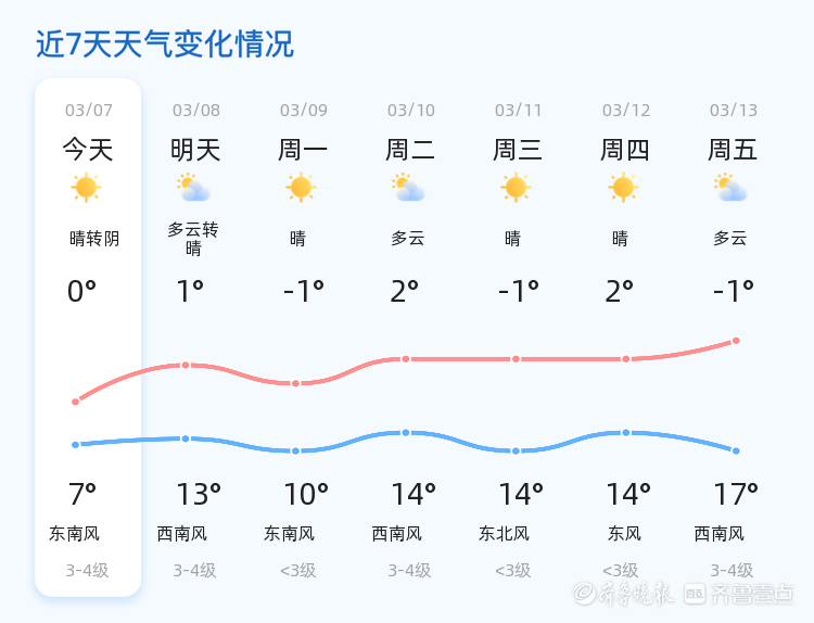 滨州3月7日天气晴转阴,未来三天气温波动较大