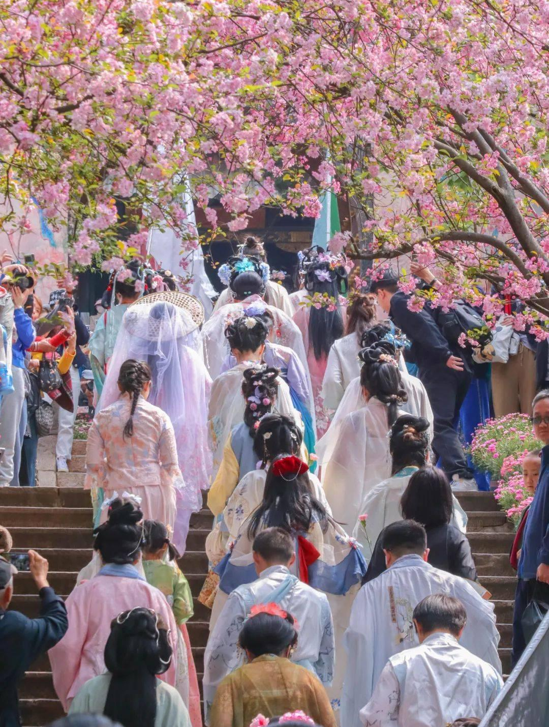 花朝节期间,每逢周六,汉服巡游都将如约而至。花仙子衣袂翩跹,穿行花影,与你共赴每一场春日之约。