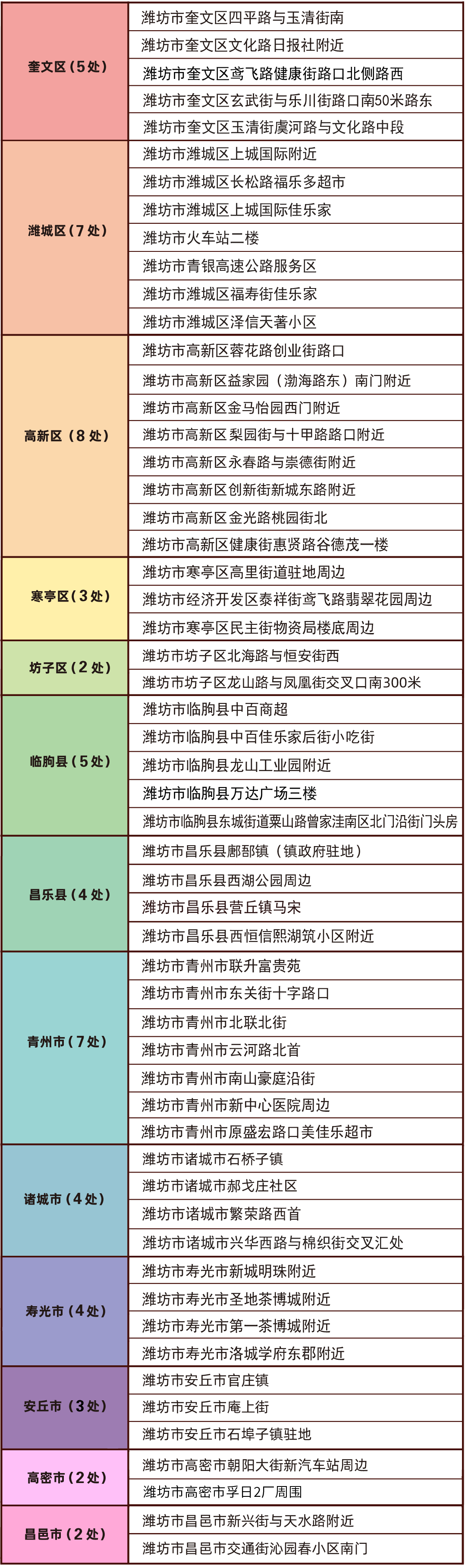 新增销售场所位置须符合山东省及潍坊市关于间隔通行距离的相关规定。