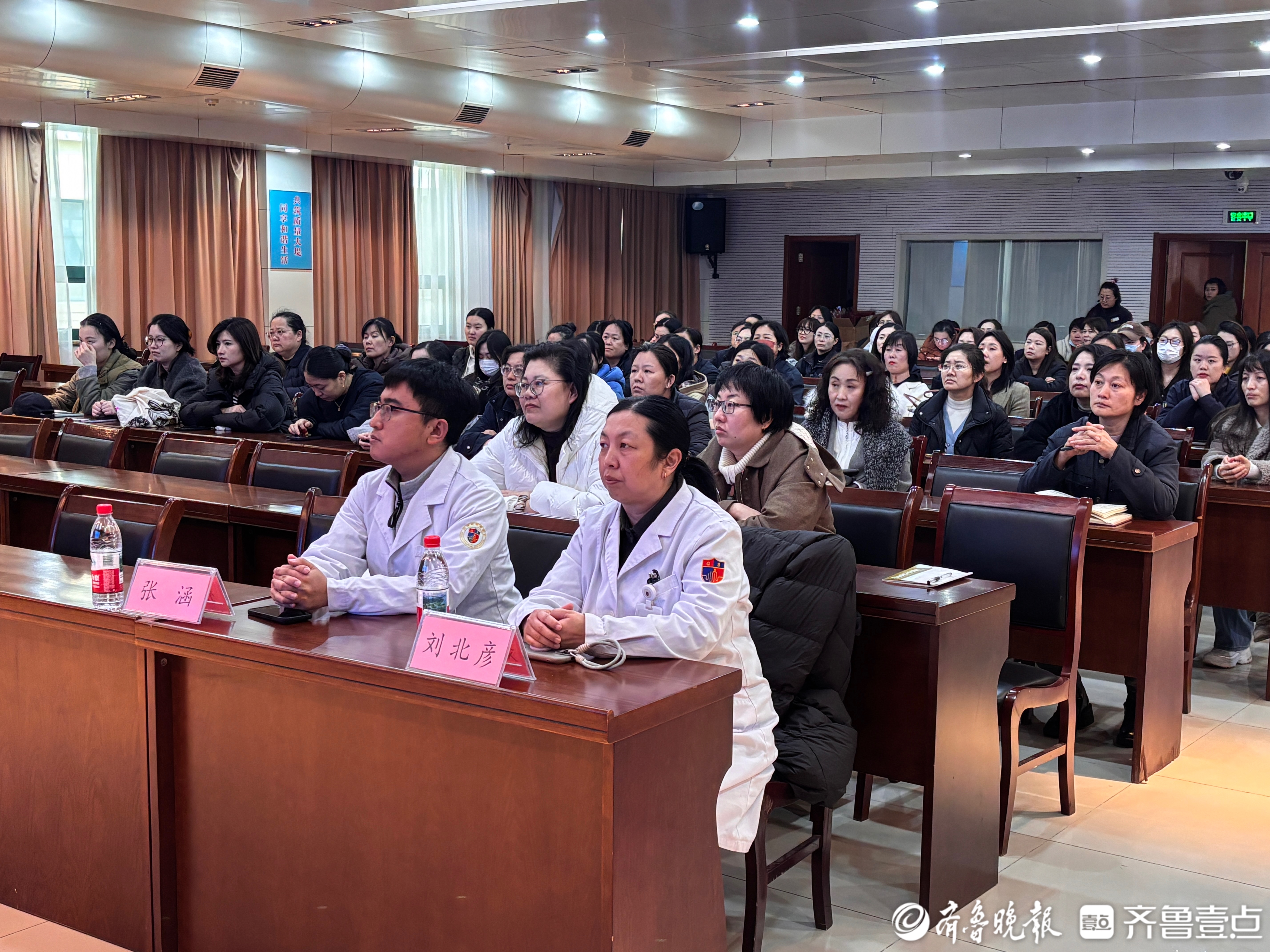 下午2点10分,专题讲座正式开讲。首位主讲专家是日照心脏病医院内分泌科学科带头人刘北彦,她以“健康生活方式与三高疾病预防”为主题,用通俗易懂的语言拆解专业知识。刘北彦详细讲解了高血压、高血糖、高血脂的诊断标准与危害,强调“三高”疾病已呈现年轻化趋势,女性因生理特点和生活压力,更需重视预防。“每天食盐摄入量要控制在5克以内,可用香辛料替代部分食盐;碳水化合物优先选择全谷物和杂豆,搭配300-500克新鲜蔬菜,这样的饮食结构能有效降低代谢疾病风险。”她还结合职场女性的工作节奏,推荐了快走、游泳等低强度有氧运动,建议每周坚持5-7天,每次30分钟以上,帮助改善心血管功能。