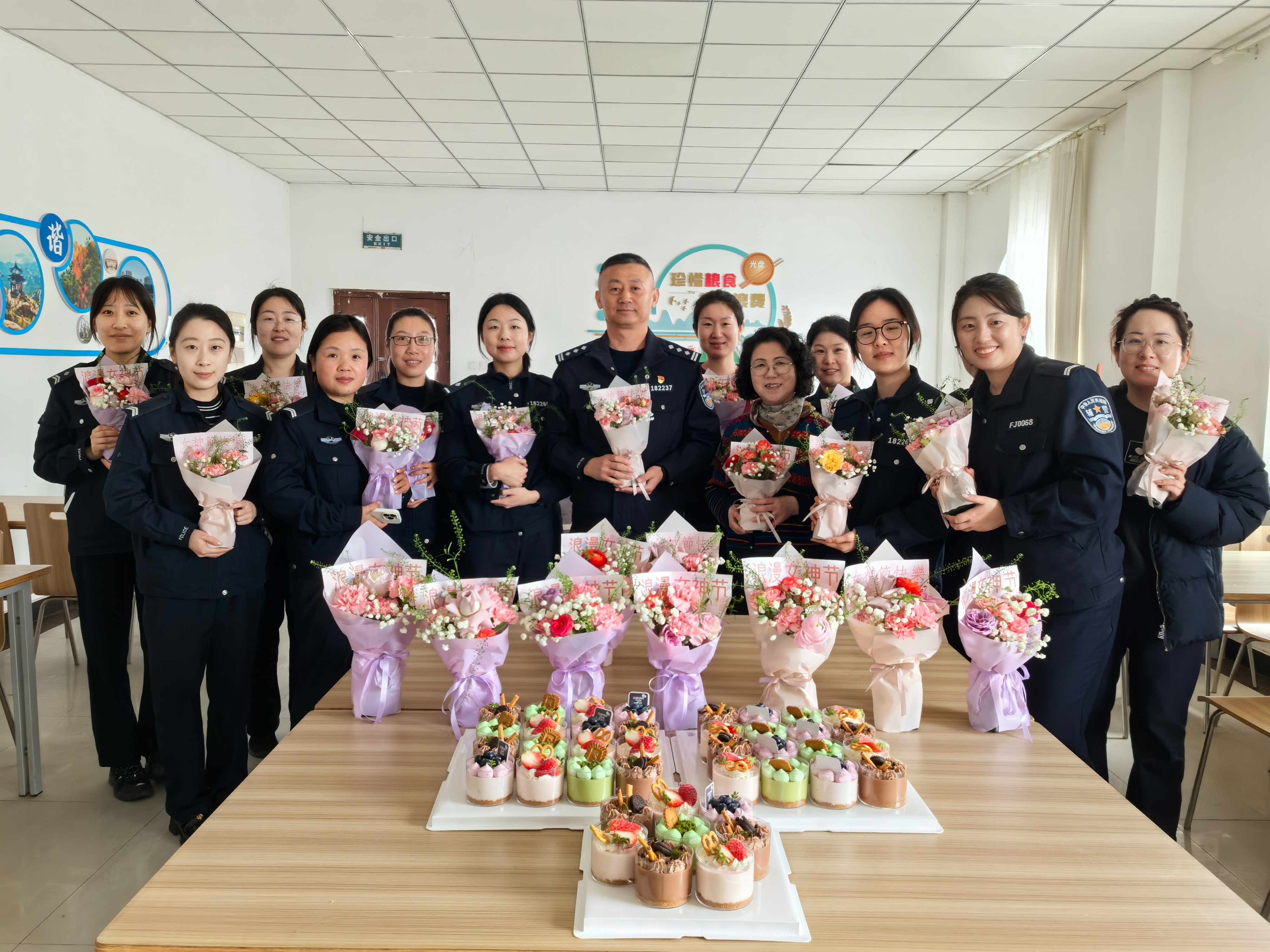 3月5日中午,棘洪滩派出所向全体女同志送上精心准备的鲜花及蛋糕,致以节日的美好祝福和诚挚问候。一束束鲜花芬芳馥郁,一个个蛋糕甜甜蜜蜜,一句句问候温暖人心。收到祝福与鲜花的女警们脸上洋溢着喜悦笑容,充分感受到了警营大家庭的关怀与活力,进一步凝聚了队伍向心力。