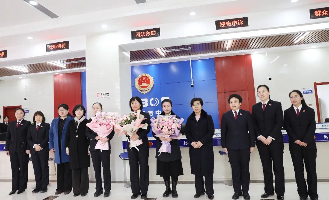 芳菲三月沐春风,检徽闪耀映芳华。在“三八”国际劳动妇女节来临之际,禹城市人大、统战部、妇联到检察院看望慰问女检察干警,向坚守岗位的全体检察干警致以诚挚问候和美好祝福。