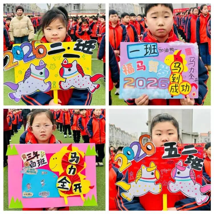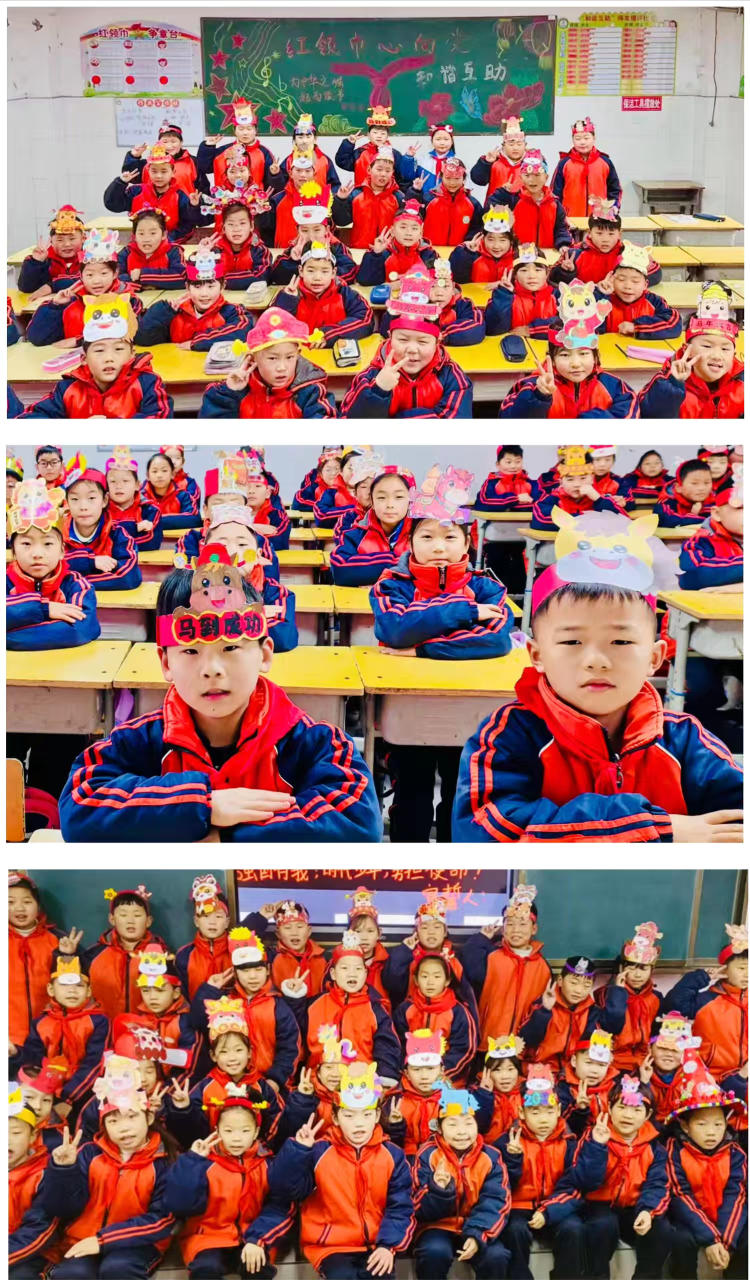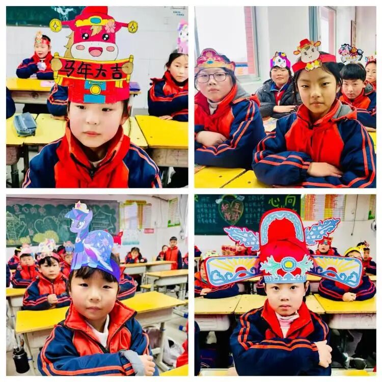 同学们的头饰,有的写着“马到成功”,有的画着奔腾的骏马,还有的化身成了灵动的独角兽。 每一笔色彩,都是对新年的期许;每一个造型,都是独一无二的创意。