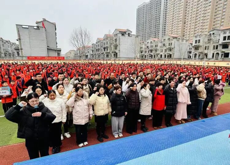 教师宣誓完毕,全体学生高举右拳,以少年之名庄严宣誓。整齐洪亮的誓言回荡在校园上空,彰显出同学们笃学上进、自强争先、勇担少年使命的赤诚信念。