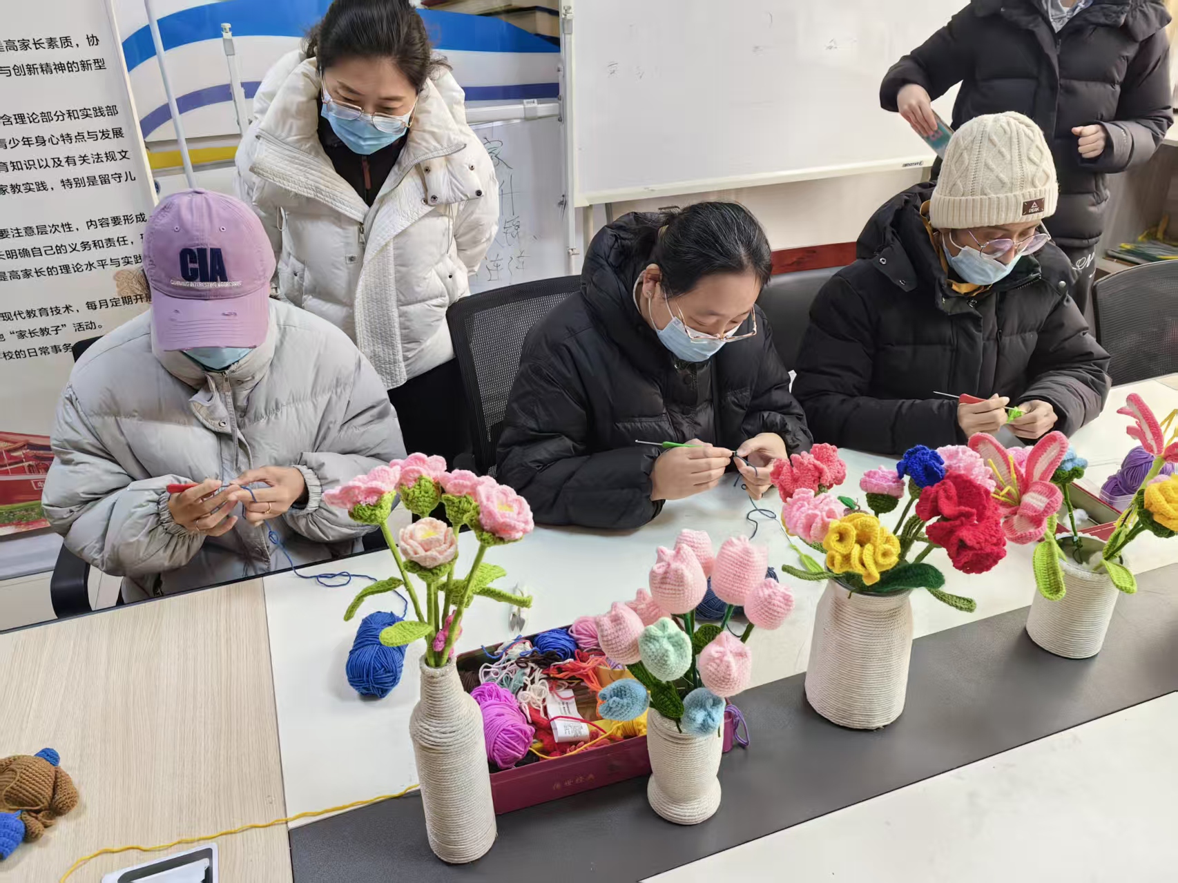 在实践过程中,对于一些初次接触钩花的居民来说,难免会遇到一些困难。老师手把手地指导,纠正大家的姿势和针法。社区工作人员也积极协助,为大家提供帮助和支持。渐渐地,大家逐渐掌握了钩花的技巧,手中的毛线开始有了形状,一朵朵小花、一片片叶子逐渐成型。