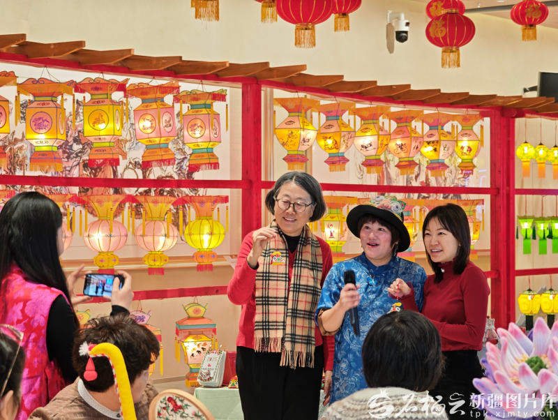 活动伊始,乌鲁木齐市级非遗代表性项目布老虎技艺市级代表性传承人马秀玲登台开讲。她自幼随母亲学习布老虎制作,后拜师深造,更将艾德莱斯绸等新疆元素融入创作,让传统布老虎焕发新疆韵味。