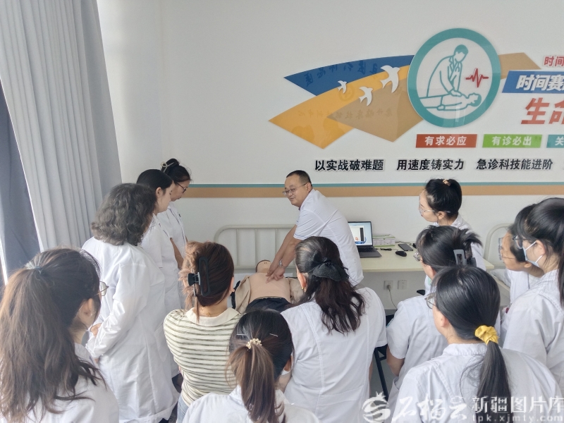 2025年9月,轮台县医共体总医院组织开展了为期一个月的急诊急救技能培训,增强医共体各成员单位临床医生的急救意识与技能,提升应急处置与应变能力。图/轮台县卫生健康委提供