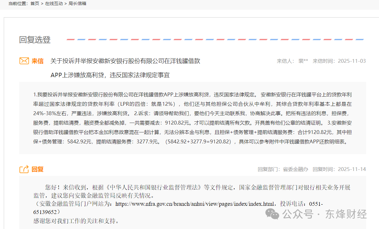 超4.6万条投诉!洋钱罐被指担保费服务费层层叠加、实际年化利率超36%