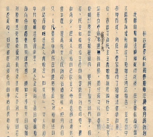 馆藏档案1953年《桓台县委关于开展婚姻法运动的计划》