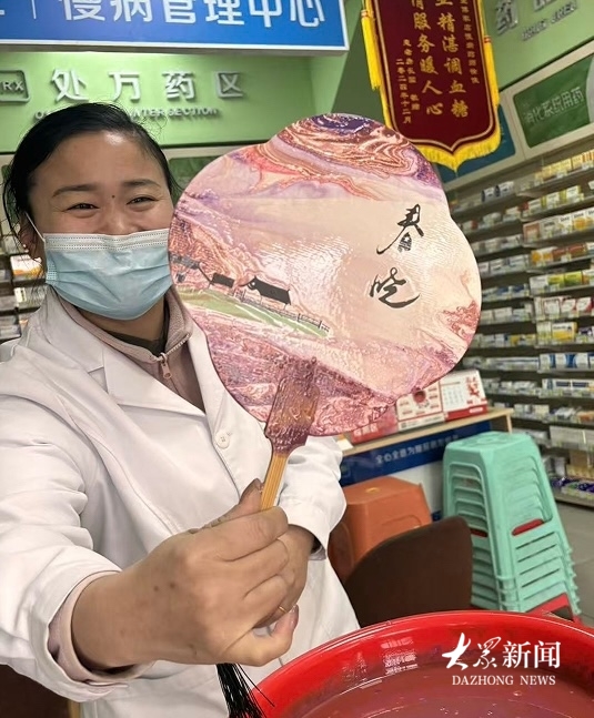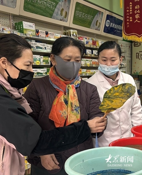 在信宏仁医药傅家店“DIY漆扇”公益联谊活动现场,会员们学习了漆扇的历史渊源、制作工艺及文化内涵,大家对这一传统艺术形式有了深入了解。大家纷纷动手,发挥创意,将色彩斑斓的漆料滴入水中,巧妙地搅拌、勾勒,再将扇面缓缓浸入,让漆料在扇面上自然晕染,形成独一无二的图案。经过一番精心创作,一把把精美的漆扇制作成功了。