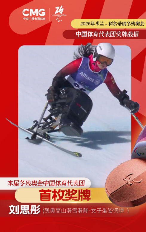 刘思彤摘铜!米兰冬残奥会中国代表团首枚奖牌诞生央视新闻 2026-03-07 18:30:25米兰-科尔蒂纳冬残奥会高山滑雪女子滑降(站姿)比赛,中国代表团开幕式旗手刘思彤夺得铜牌!这是本届赛事中国代表团首枚奖牌!(央视新闻)责任编辑:崔可腾