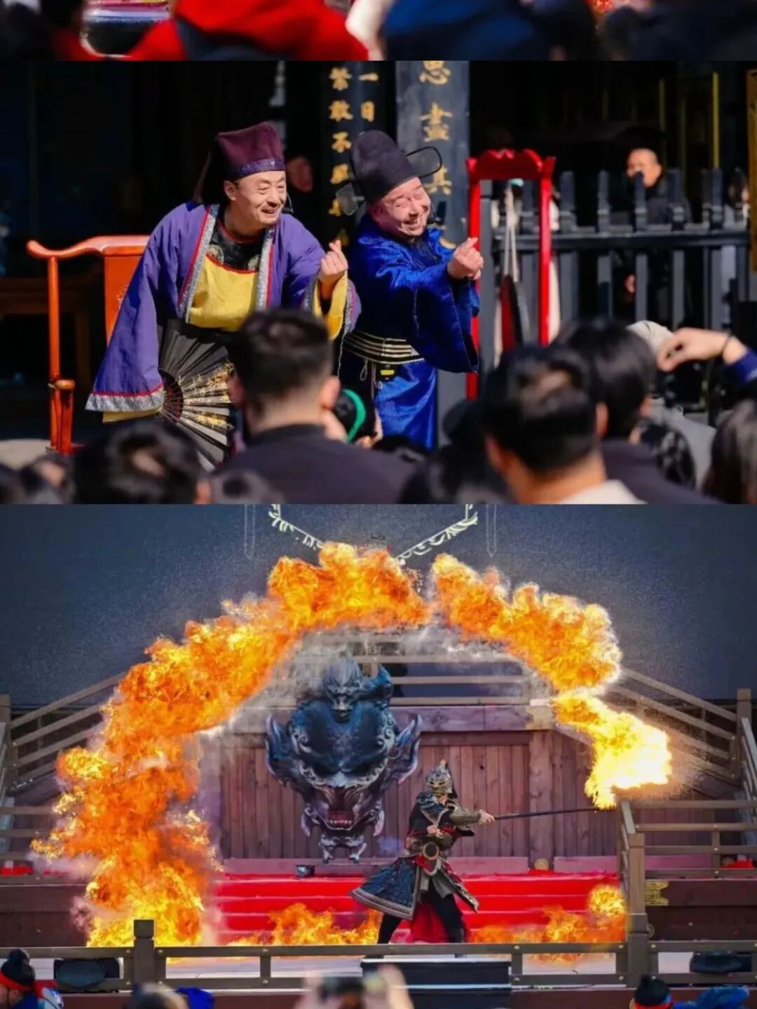 白天看古城建筑,晚上赏灯火辉煌,穿上汉服,随手一拍都是大片。每日有超过300场国风演艺、七大主题街区步步有戏,超多NPC互动。2026年春节爆款《国士·捍山河》,150余名演员与上百匹动物同台,环场跑马赛道搭配火山喷发、流水奔涌特效。“镇城之宝”《国秀·琅琊》,60分钟串联三千年琅琊文脉,折叠天幕、全息投影带来超强视觉冲击,沉浸式体验“一梦千年”的感觉。