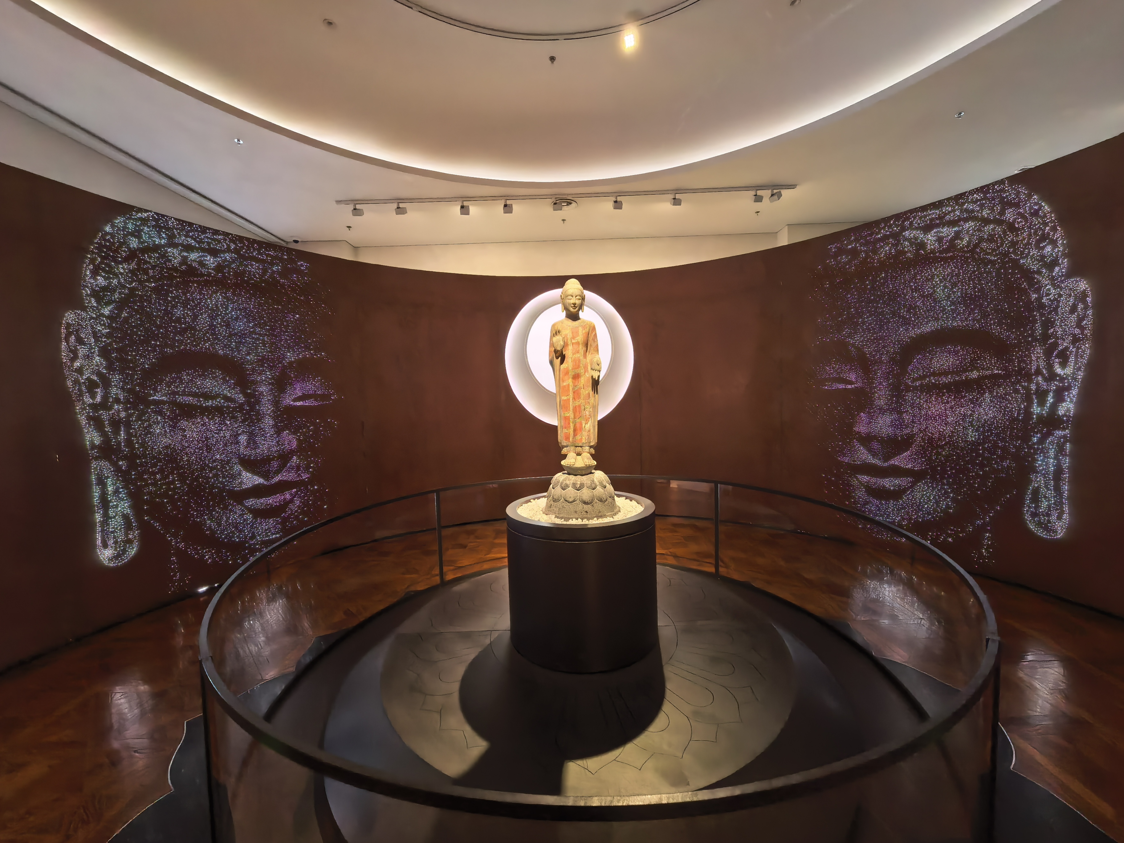 馆内三件镇馆之宝各有乾坤。明万历年间赵秉忠的状元卷,是海内外唯一存世的明代状元卷真迹,泛黄的卷轴上,万历皇帝朱笔御批“第一甲第一名”六个大字遒劲有力,隔着四百余年时光依然震撼人心。东汉“宜子孙”玉璧则以新疆和田玉精心雕琢而成,玉质温润如脂,是国内迄今发现最完整、体量最大、质地最优的玉璧,璧身上“宜子孙”三个篆字寄托着美好的祈愿。而龙兴寺佛教造像更是惊艳,出土的400余尊佛教造像跨越北魏至北宋五百余年,雕刻工艺精湛绝伦,被学界誉为“学术界的奇迹”,那穿越千年的微笑尤其动人,被称为“青州微笑”,温润而神秘。