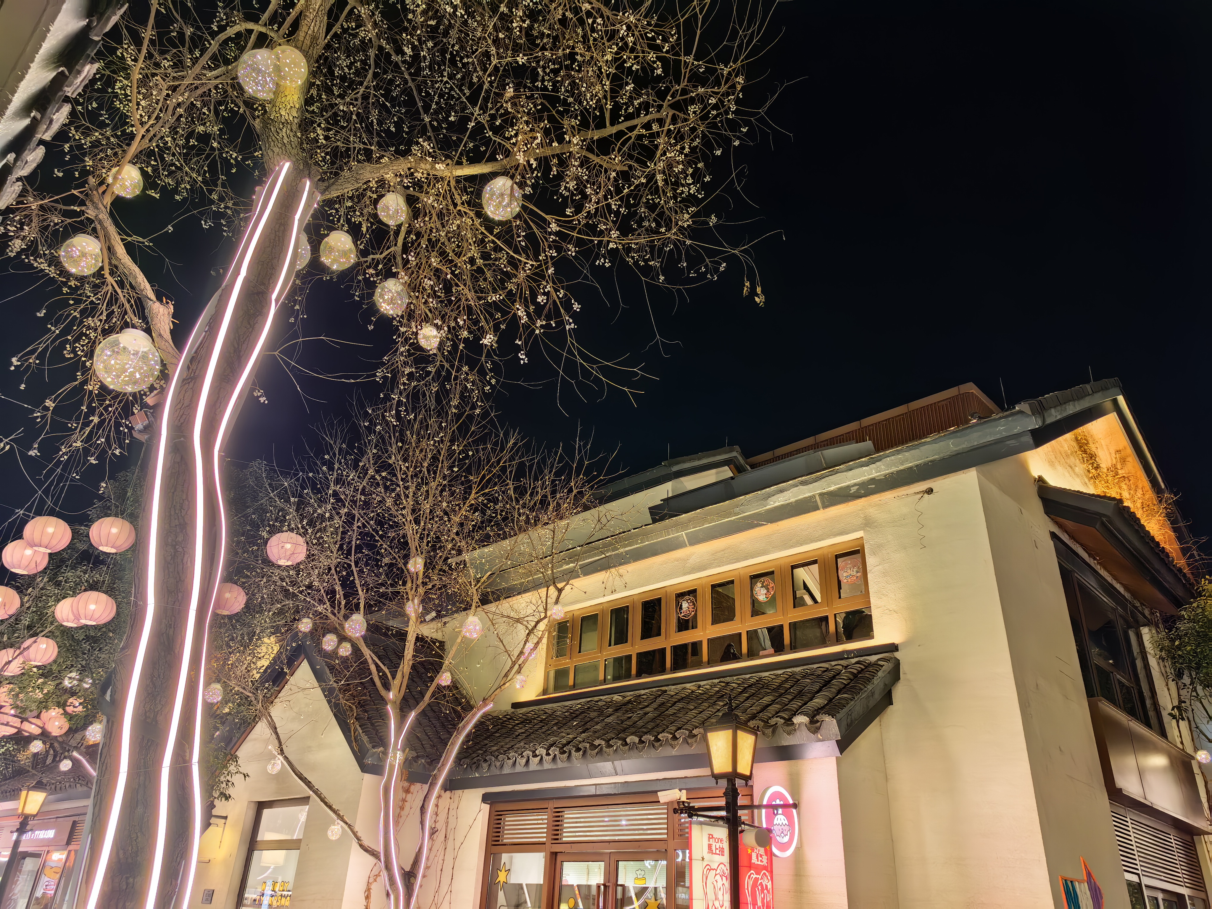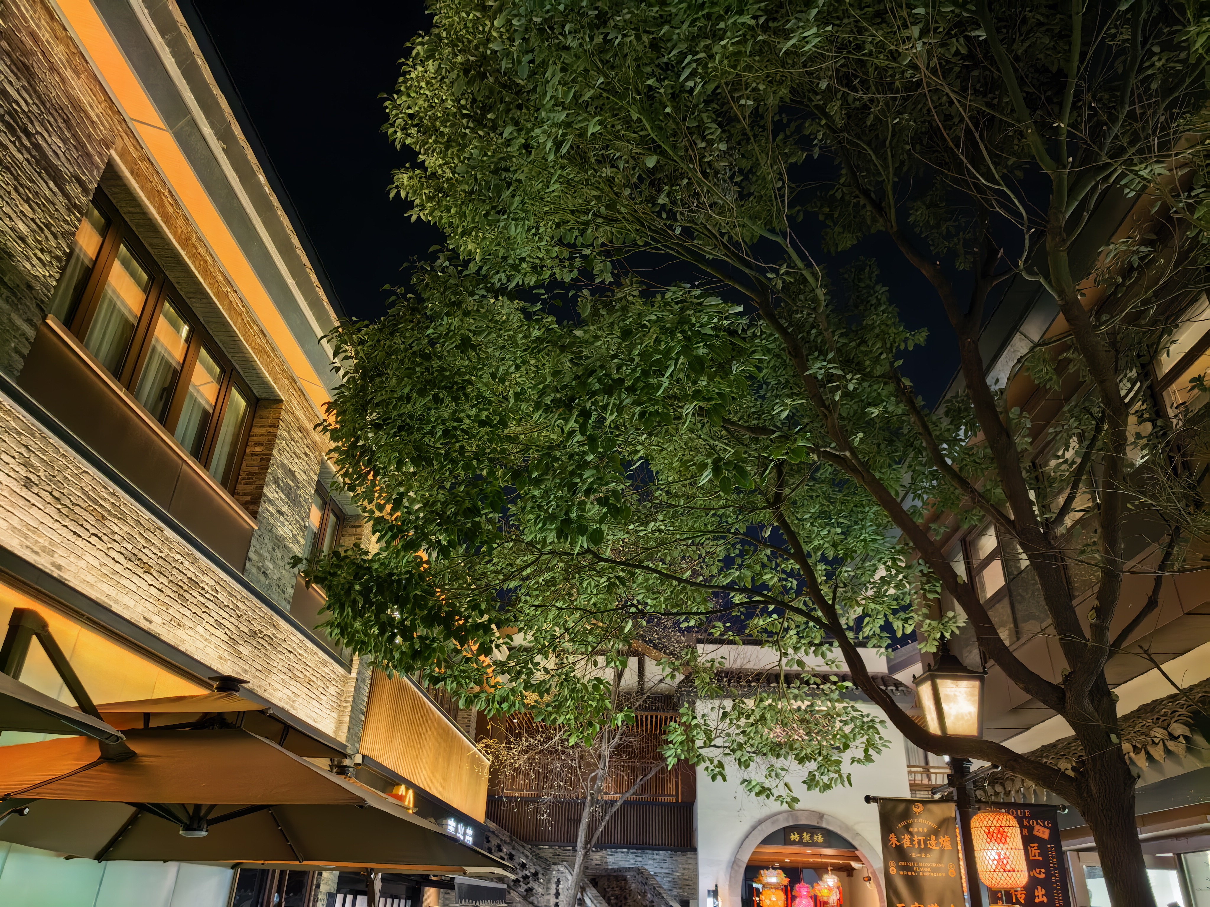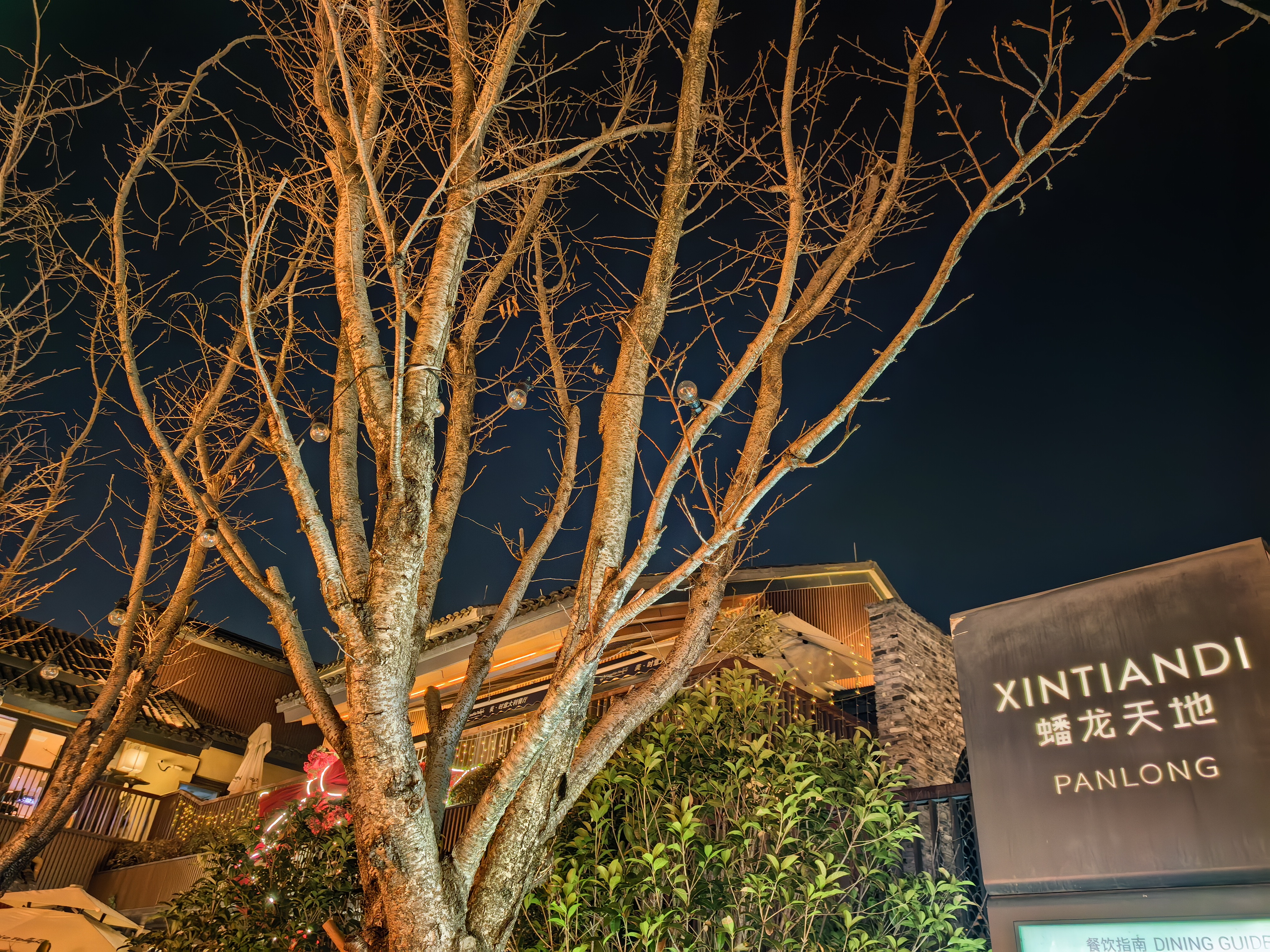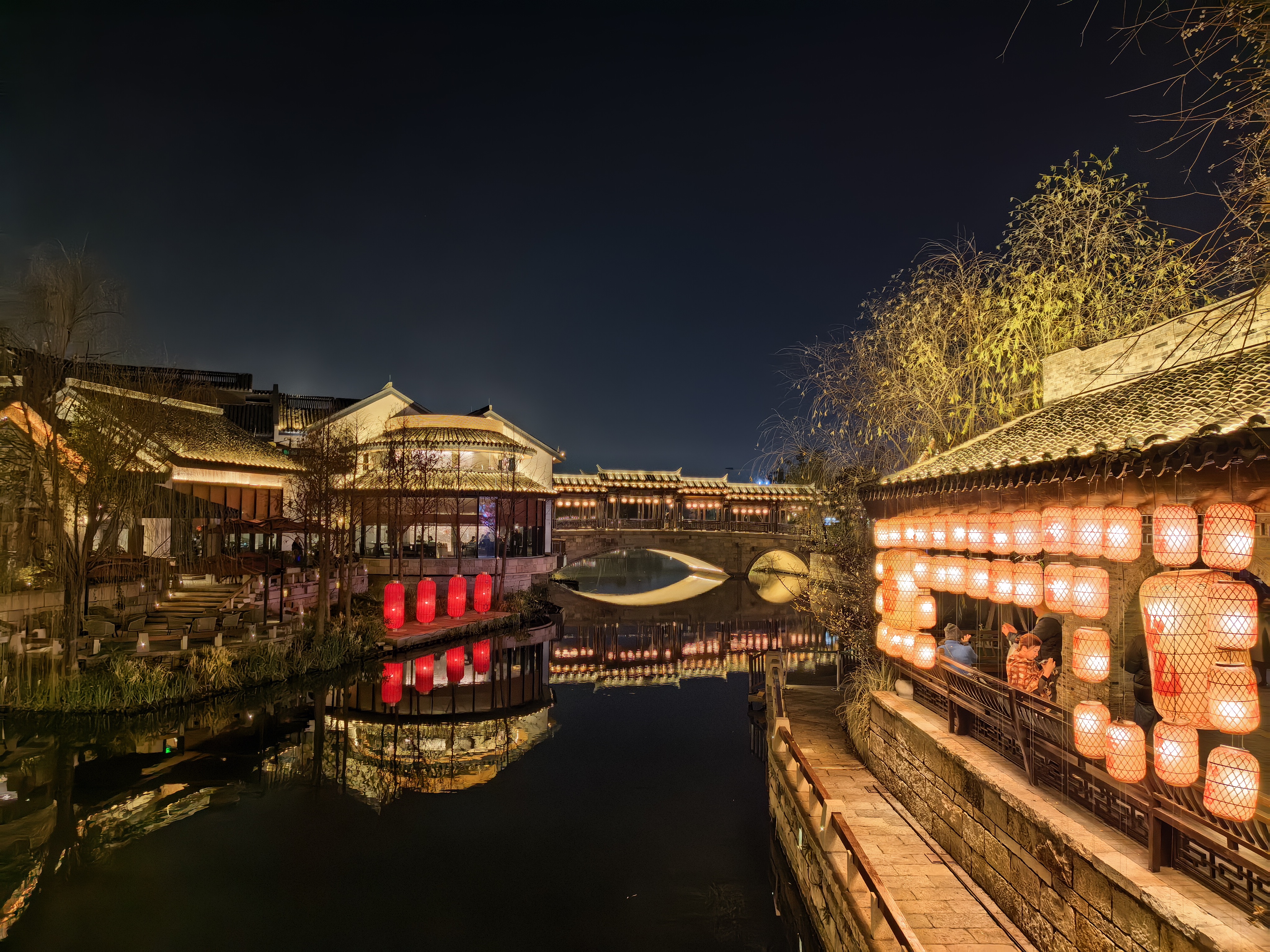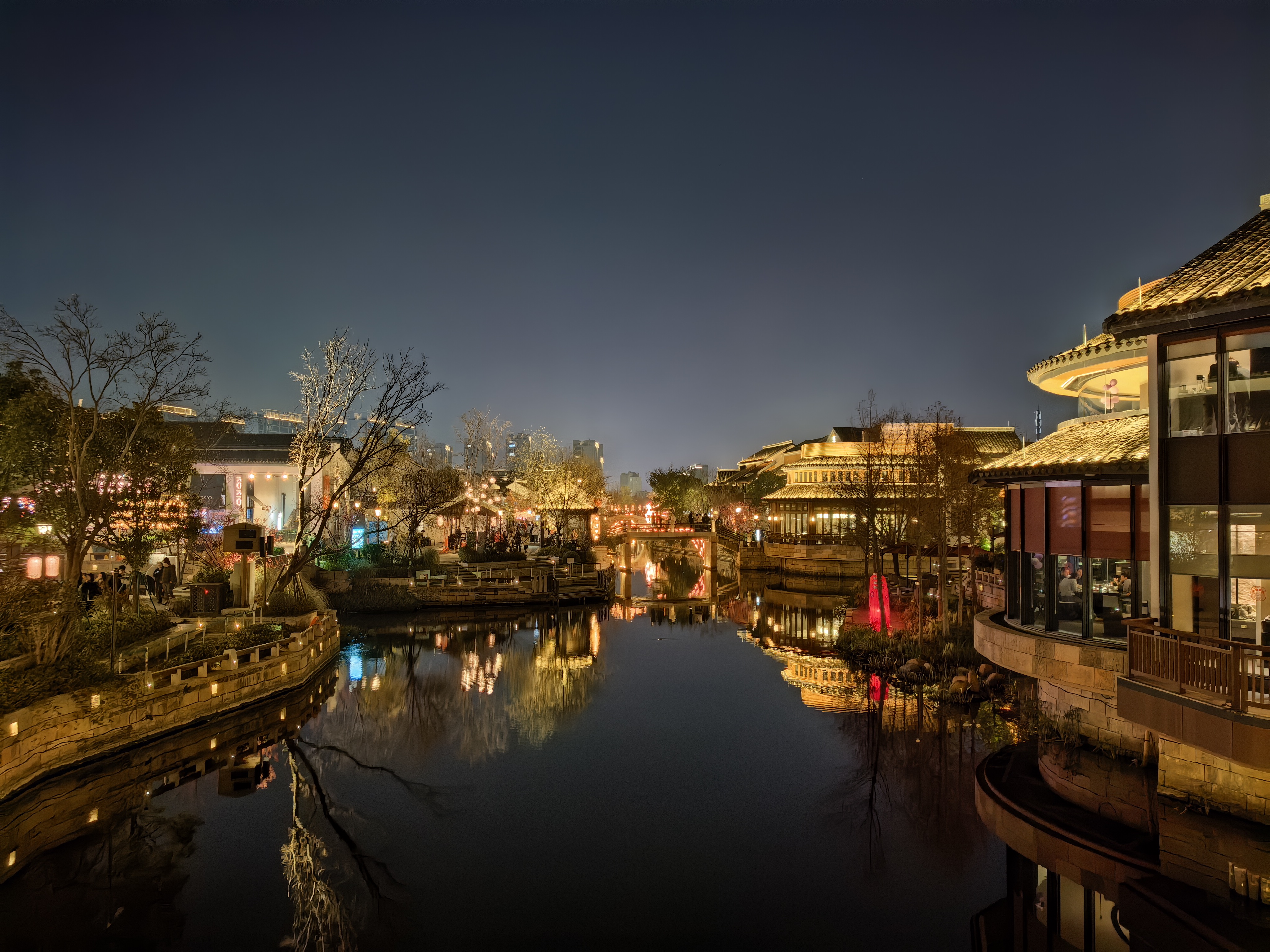 高铁穿越鲁南的田野与苏北的河道,窗外景色由苍茫渐转湿润。晚上到了上海蟠龙天地,这是一个位于上海青浦区西虹桥商务区的一个“城市微度假目的地”。暮色中,这片被灯火重新点亮的古老土地展现出独特的魅力。它拥有5万平米的商业街区和23万平米的超大绿地,廊桥横跨水面,商铺沿河道错落排布, 绿化覆盖率极高,被称为“公园里的新天地”。
