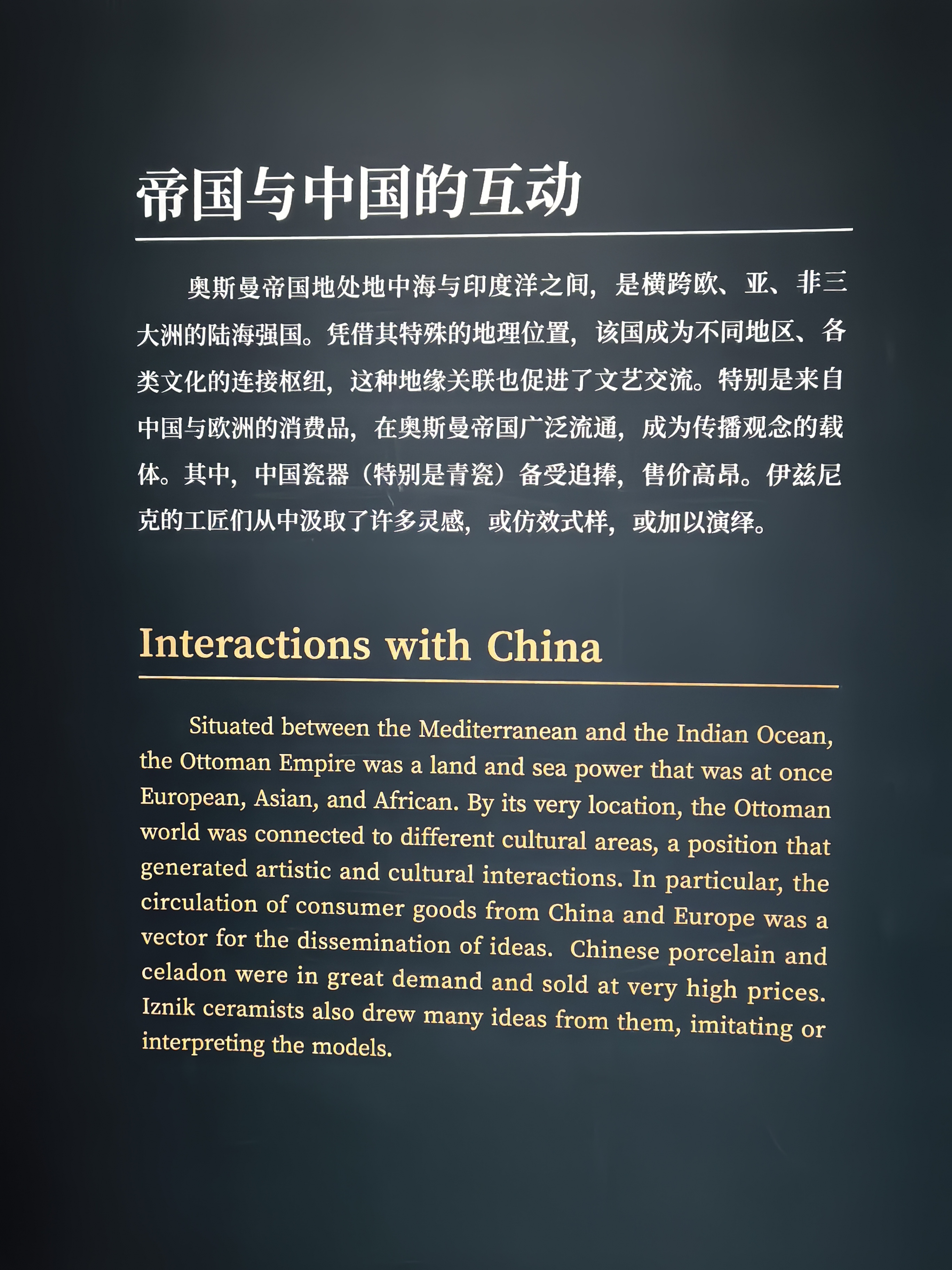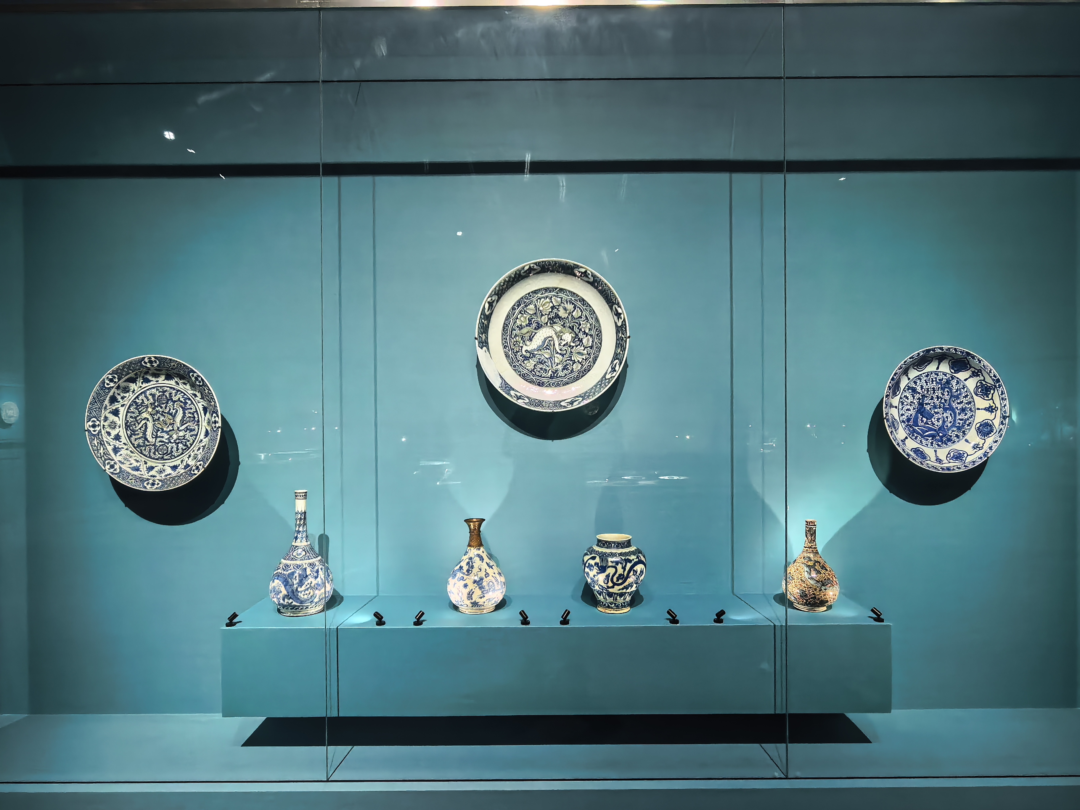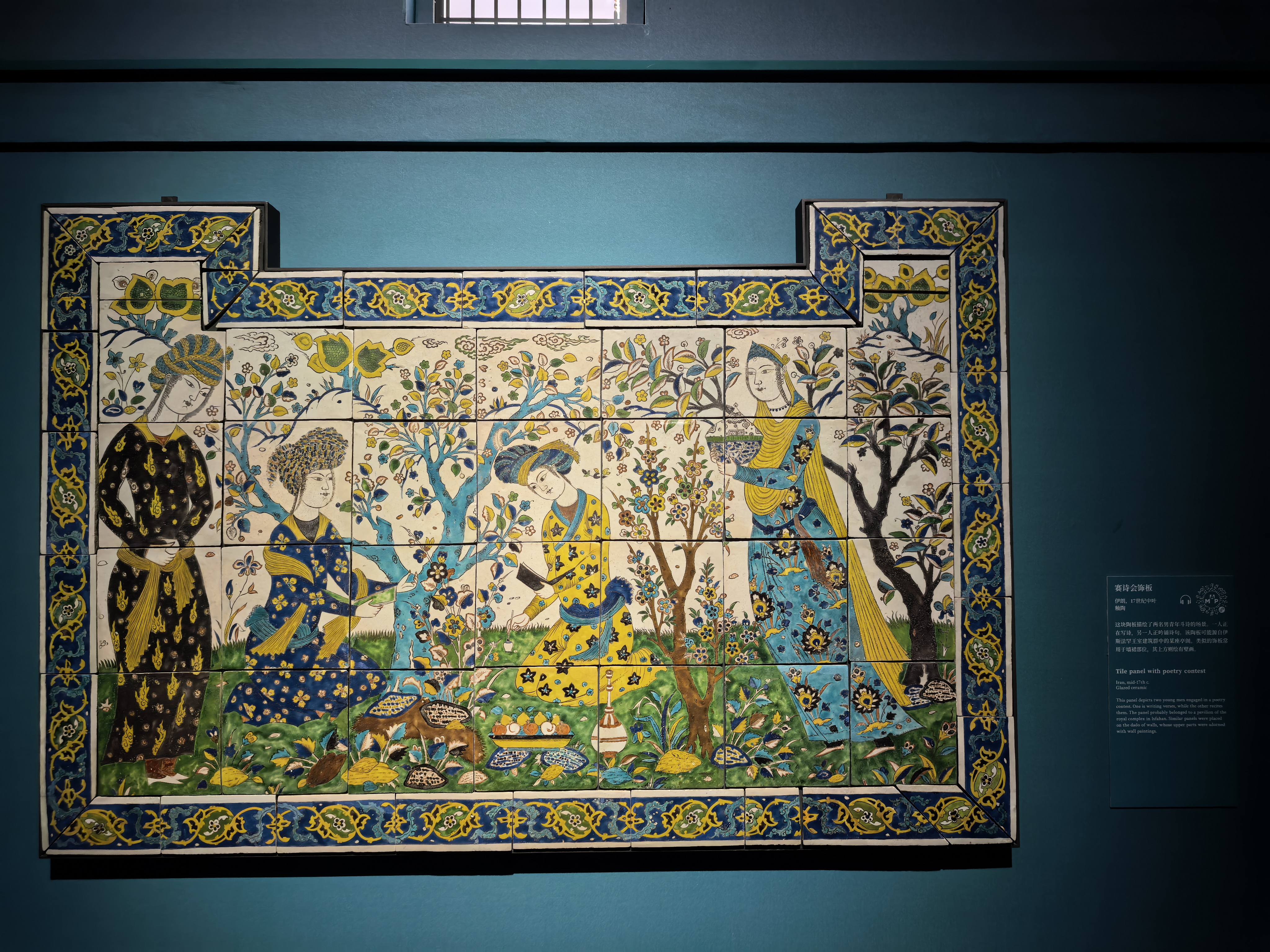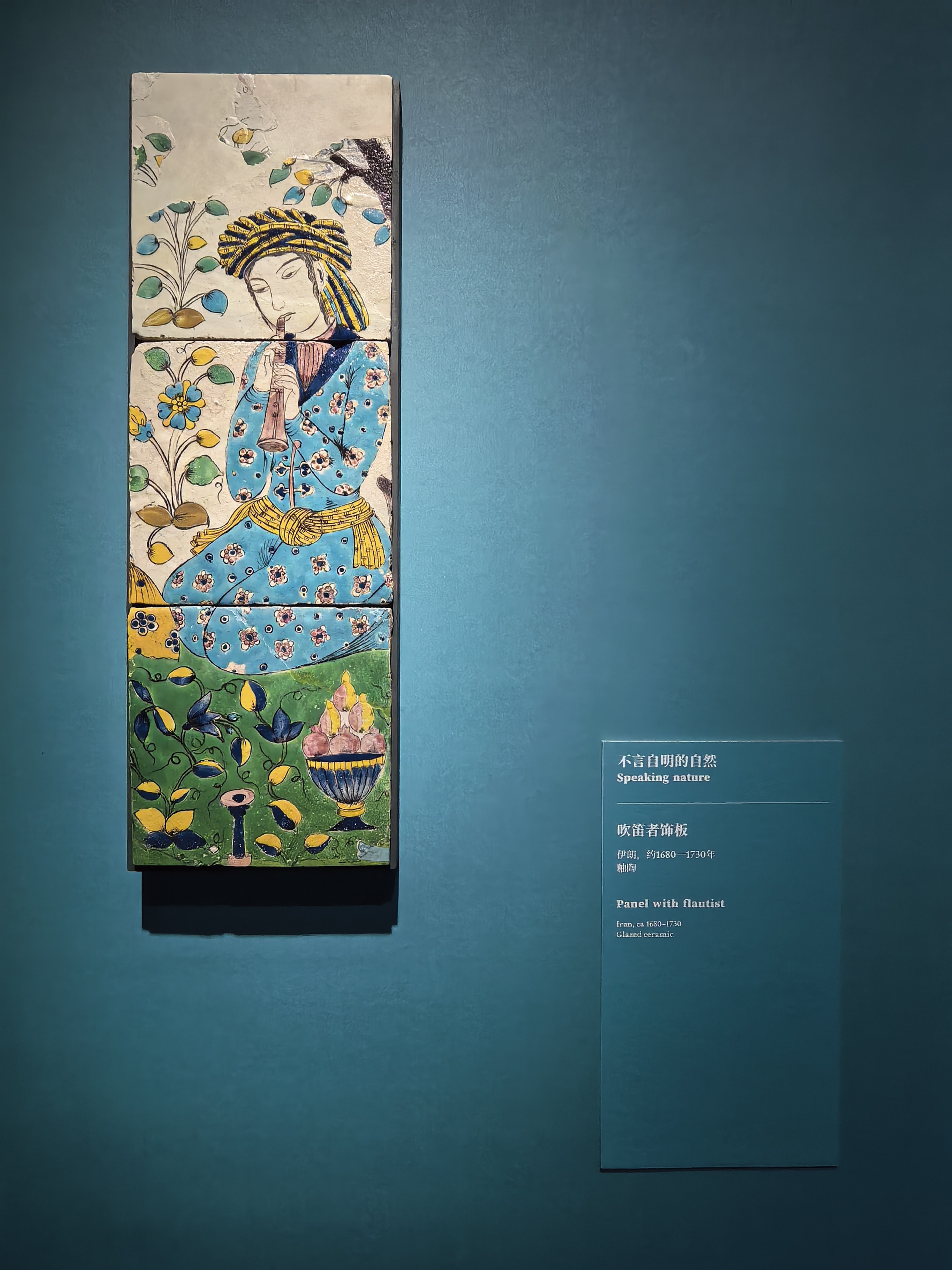 如果说毕加索的艺术是打破常规的视觉狂暴,那么这场展览则是对极致秩序与和谐之美的颂歌。展览生动诠释了阿拉伯式花纹、几何图形与书法艺术的交织融合。那些历经数百年岁月的波斯地毯,经纬间编织着繁复而对称的宇宙观;光彩熠熠的错金银器物与细腻温润的玉石,在展厅柔和的灯光下,依然流转着昔日帝国的辉煌。更为奇妙的是,在这些充满异域风情的器物上,我时常能瞥见中国青花瓷或传统莲花纹样的影子,让人不禁感叹古代丝绸之路上文明交融的深远影响。
