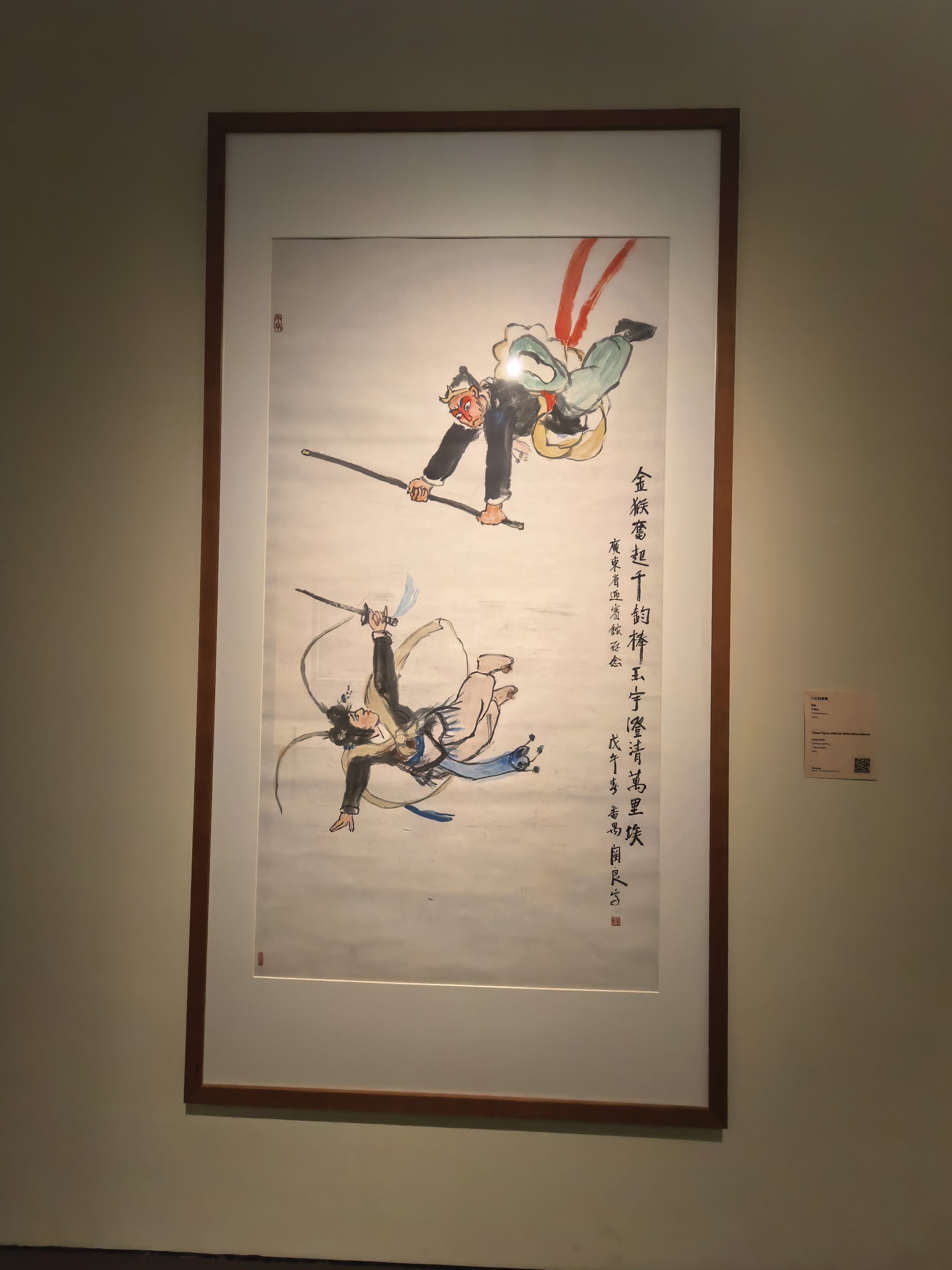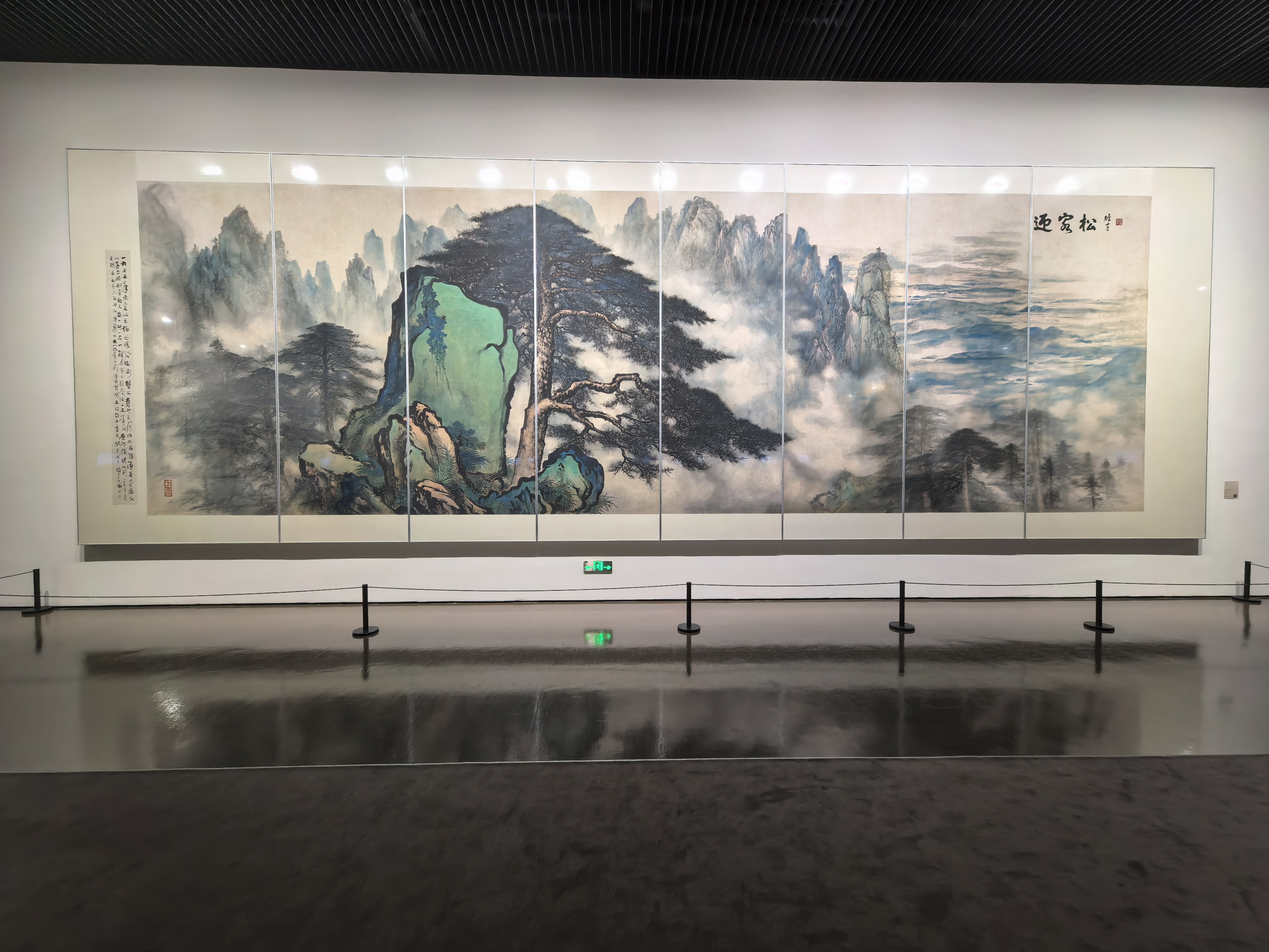 走进展厅,经典原作令人目不暇接。高剑父的《东战场的烈焰》以苍劲笔触记录民族危亡时刻,关山月的《绿色长城》展现南国绿化的壮阔景象,黎雄才的《迎客松》笔力雄健、气势恢宏,林风眠的《青衣仕女》则透着东方意蕴与现代构成的巧妙融合。这些岭南画派及近现代名家的"压箱底"珍品,完整呈现了广东美术百年的探索轨迹。