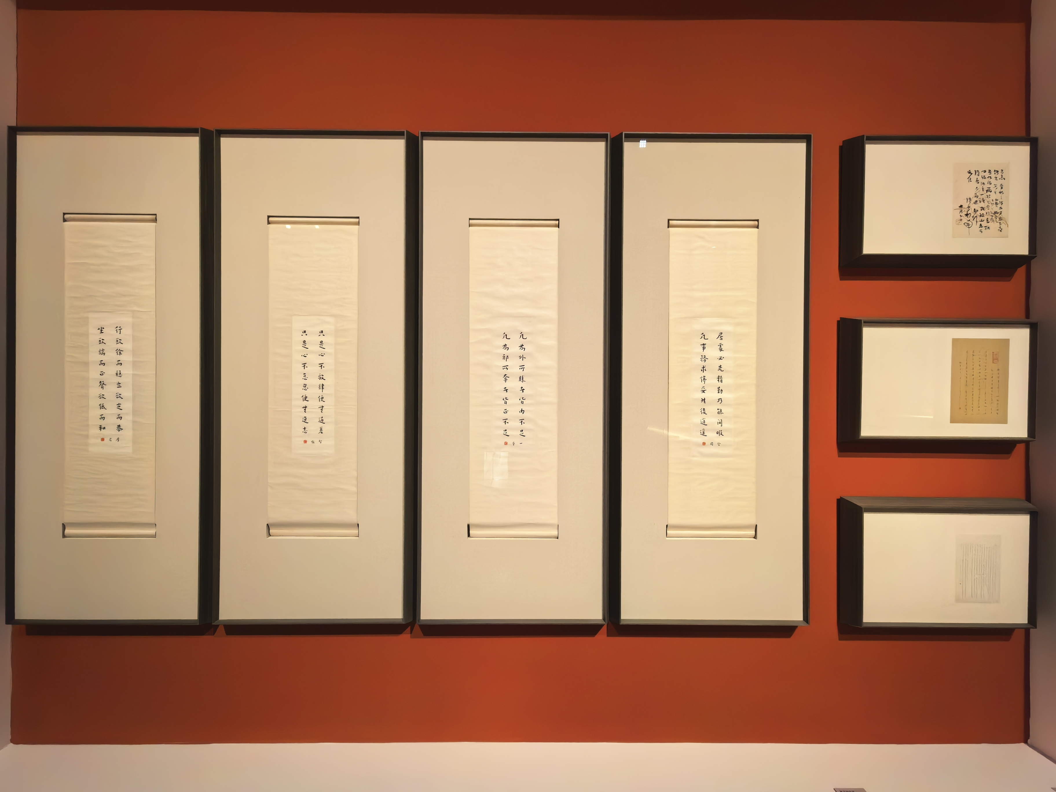 今日前往1956·如释艺术工场,观摩“铜声—书法艺术展”。这是一场格调高雅且低调内敛的书法雅集,由魏全钦担任策展人、魏庆立担任主持,汇集了于剑波、马德田、汪海权、柴天鳞、蔡梦霞、魏全钦六位当代书家的精品力作。六位艺术家各具面目,或取法北碑之雄强,或吸纳帖学之灵动,或探索现代构成之新意,共同构成了当代书法创作的多元景观。