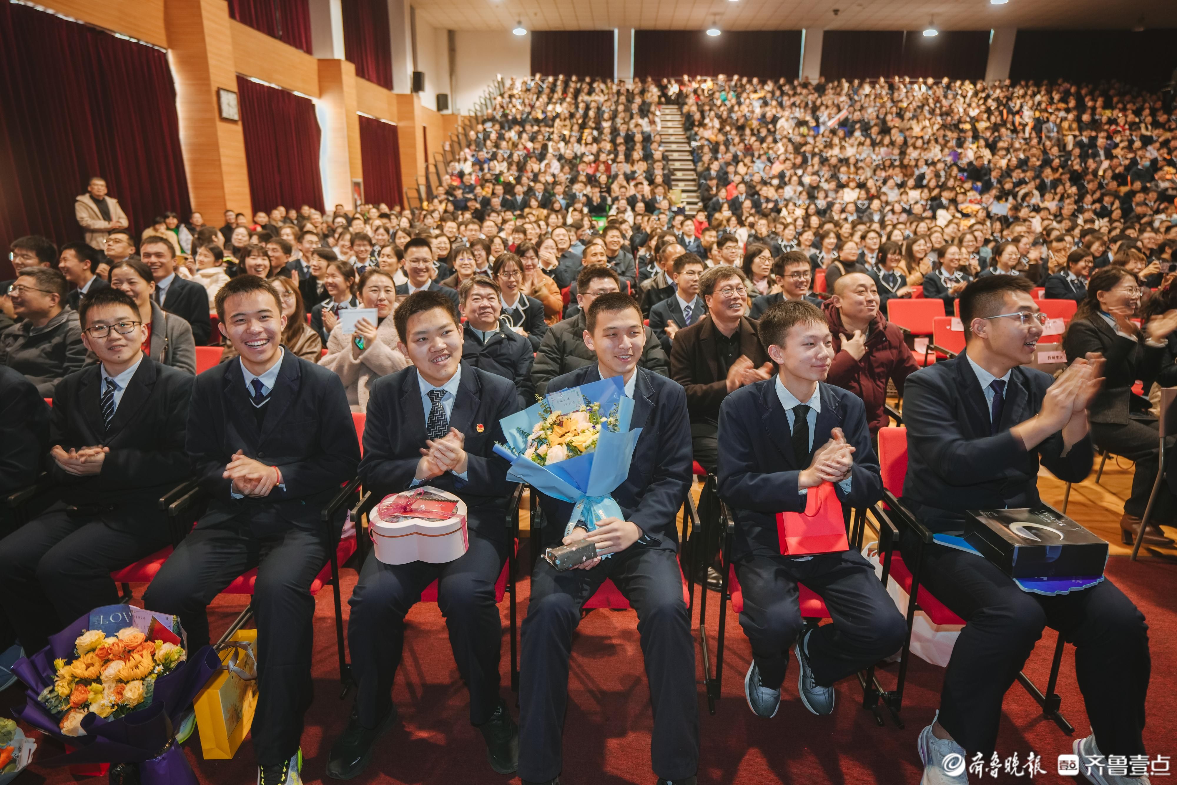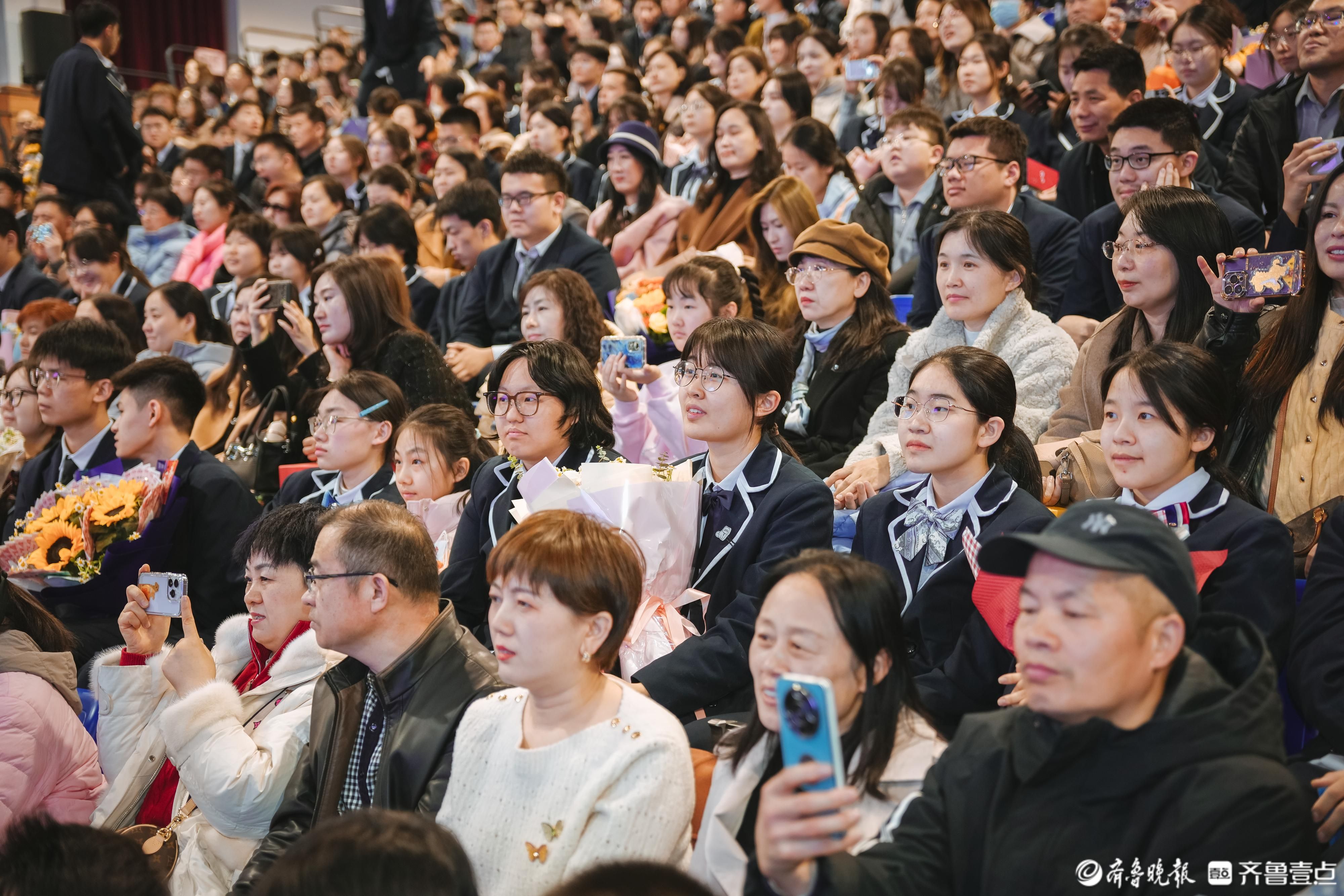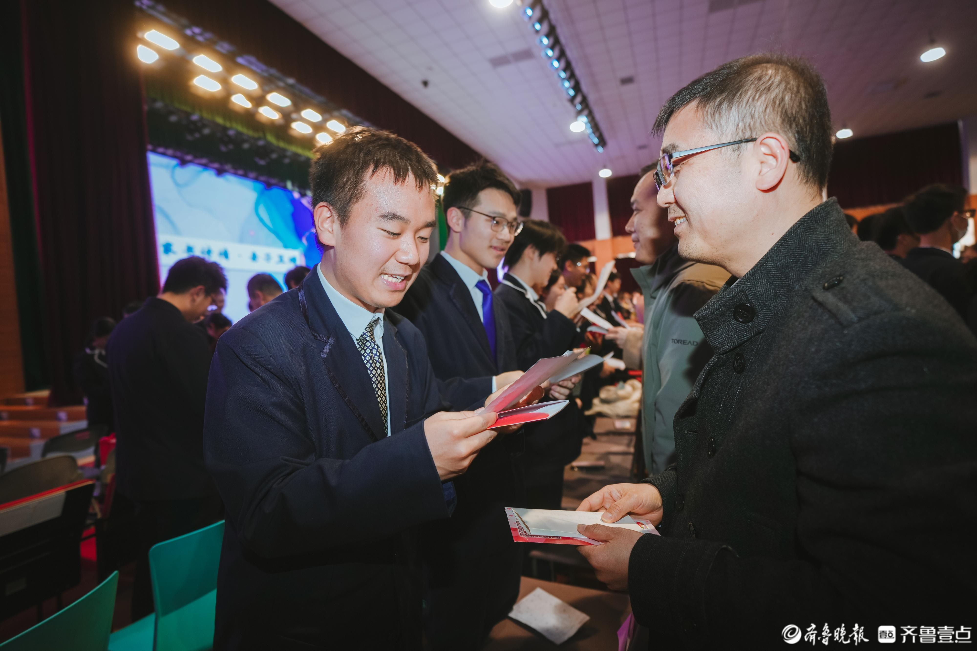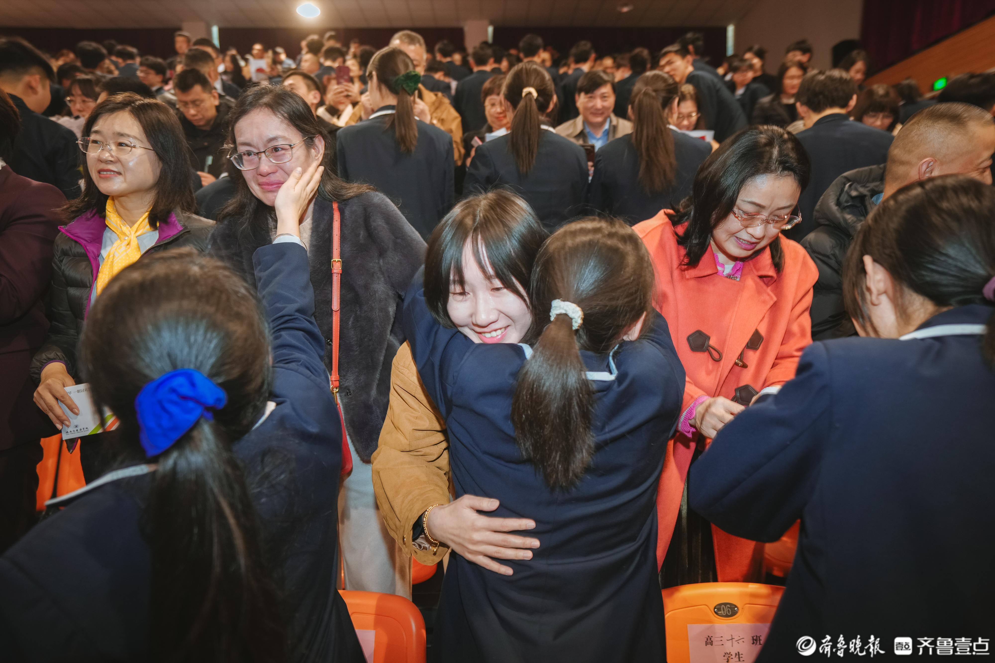 父母之爱深沉,儿女之心炙热。现场播放的学子家书与父母祝福视频,道尽感恩与牵挂。在温情音乐中,学子与父母鞠躬致谢,交换精心准备的礼物,一个拥抱、一份心意,见证成长与蜕变。