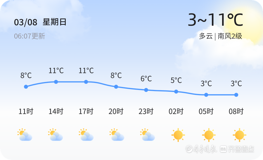聊城今日多云 气温回升 值妇女节之际提醒市民注意出行安全