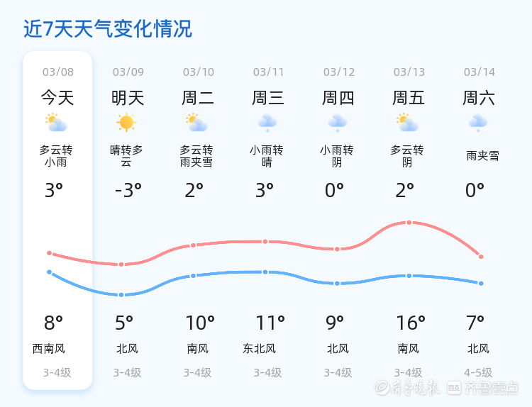 妇女节烟台迎来多云转小雨天气,未来三天气温波动较大