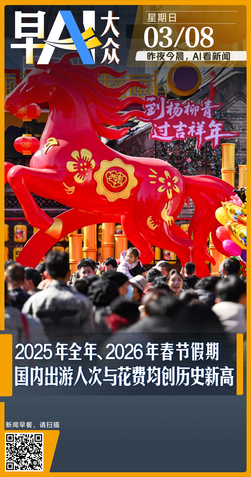 2025年全年、2026年春节假期国内出游人次与花费均创历史新高