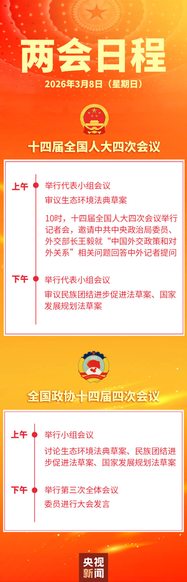 两会日程预告丨3月8日:人代会审议生态环境法典草案等,政协举行第三次全体会议