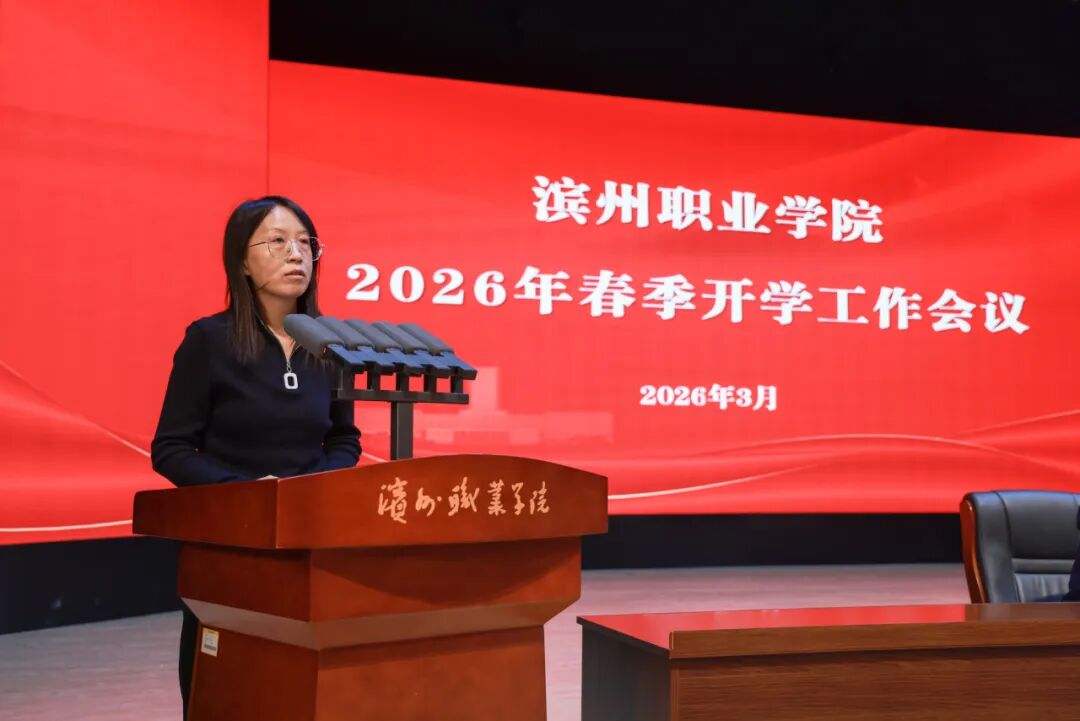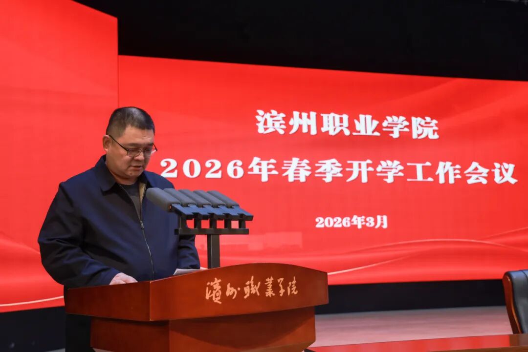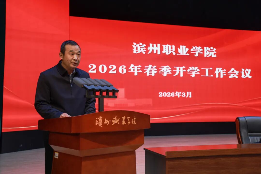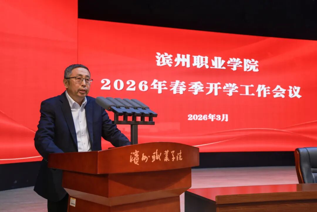 传达全省、全市“新春第一会”会议精神,回顾总结 2025 年工作成效,部署安排 2026 年度重点任务,3月6日,滨州职业学院召开2026年春季开学工作会议。动员全校上下进一步统一思想、凝聚共识,以更加饱满的热情、更加昂扬的斗志,奋力谱写学校高质量发展的新篇章。
