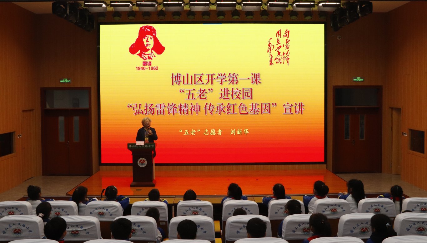 近日,淄博市博山区关工委“五老”志愿者刘新华走进博山区人民路小学为青少年学生作开学第一课“弘扬雷锋精神 传承红色基因”宣讲。