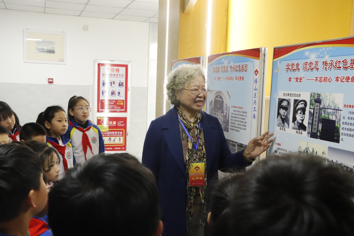 宣讲结束后,刘新华为青少年学生讲解区关工委制作的党史国史、传承红色基因等关爱教育展板知识。