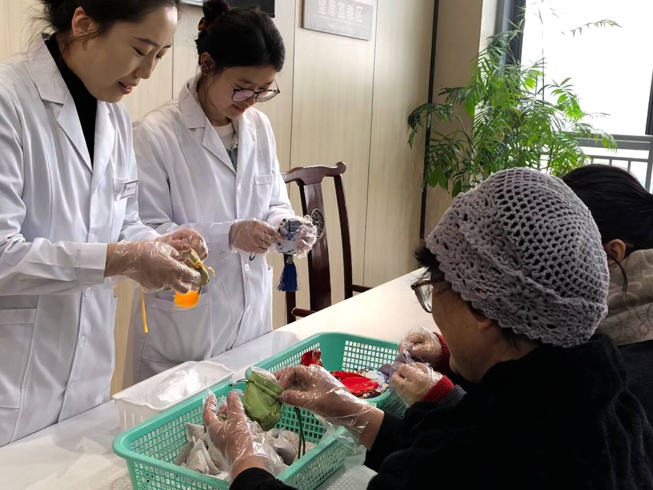 在中药香囊DIY体验区,成为现场最受欢迎的打卡点。护理团队提前备好艾叶、藿香、佩兰、丁香、薄荷等道地药材,现场讲解香囊药材功效、配伍原理与制作技巧。参与者在医护人员指导下,亲手制作安神助眠、芳香辟秽、疏肝理气的养生香囊。