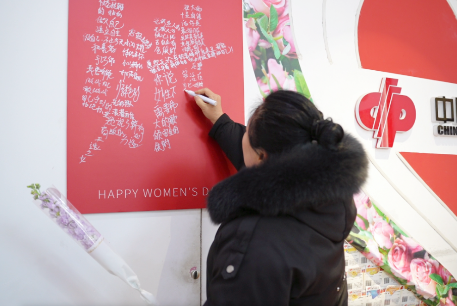 李女士接过花,笑着走向店里的“心愿墙”——那是一面绘有巨大空心字形“她”的展板,等待被一个个心愿填满。