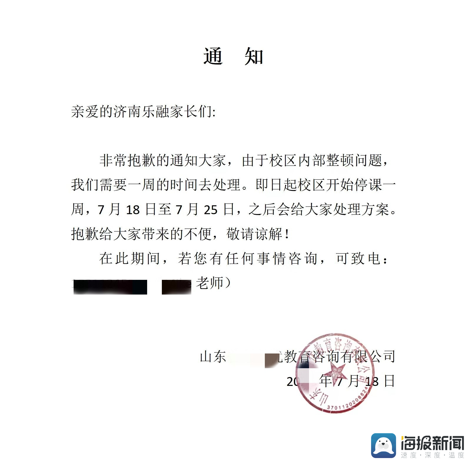 2024年7月18日,济南乐融之家高新店卷款跑路,上百位家长和培训老师受骗。(图源受访者)