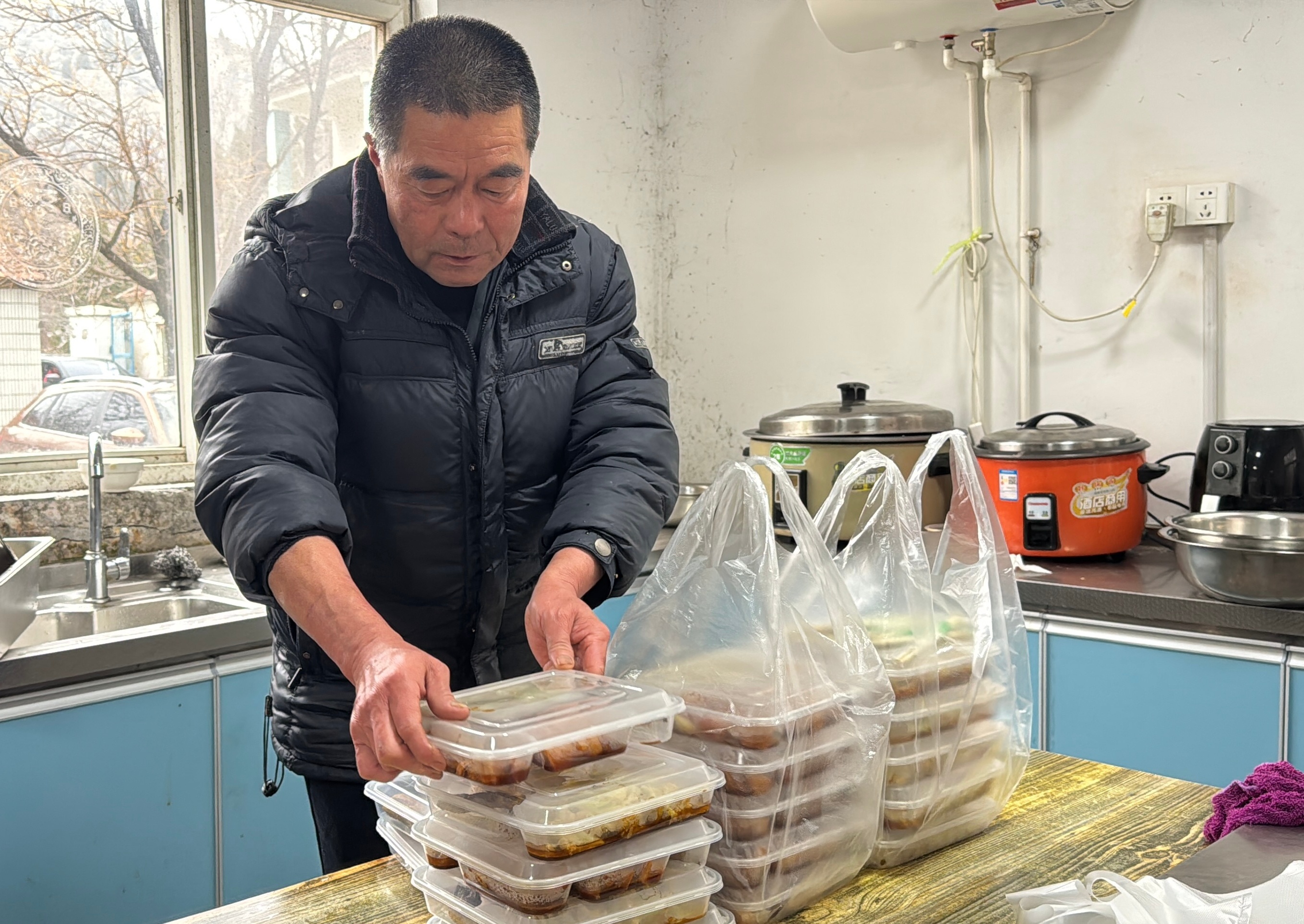 孙旭的父亲在食堂忙活员工餐。