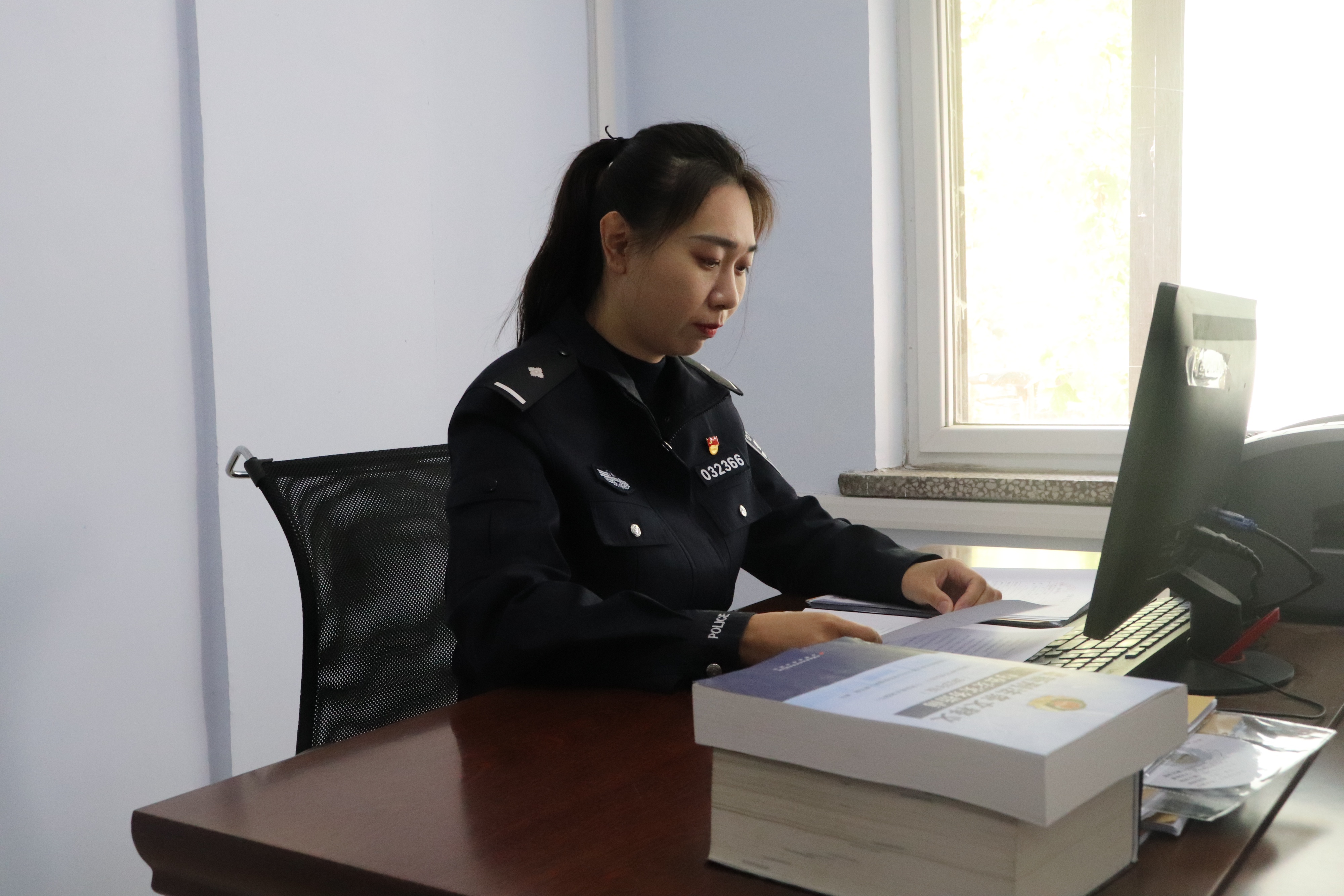 法制大队的办公室综合事务繁杂琐碎,文件流转、材料撰写、会议组织……史玉洁又甘当幕后“勤务员”,件件上心、事事落实。面对急难任务,她总是主动加班加点,任劳任怨,确保大队各项工作高效运转。她没有惊天动地的壮举,也不在追逃抓捕一线,但她用对法律的信仰和默默无闻的奉献,诠释着人民警察的责任与担当,在藏蓝警营中书写着属于自己的担当。
