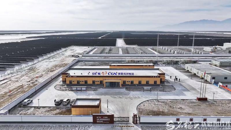 中广核和田地区策勒县80万千瓦光伏治沙项目并网,投入商业运营。图/策勒县融媒体中心提供