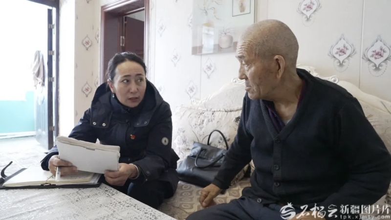 古丽米拉·达吾列提(左)走进村民家中,了解村民的生活需求。胡阿尼什·那斯哈提 摄