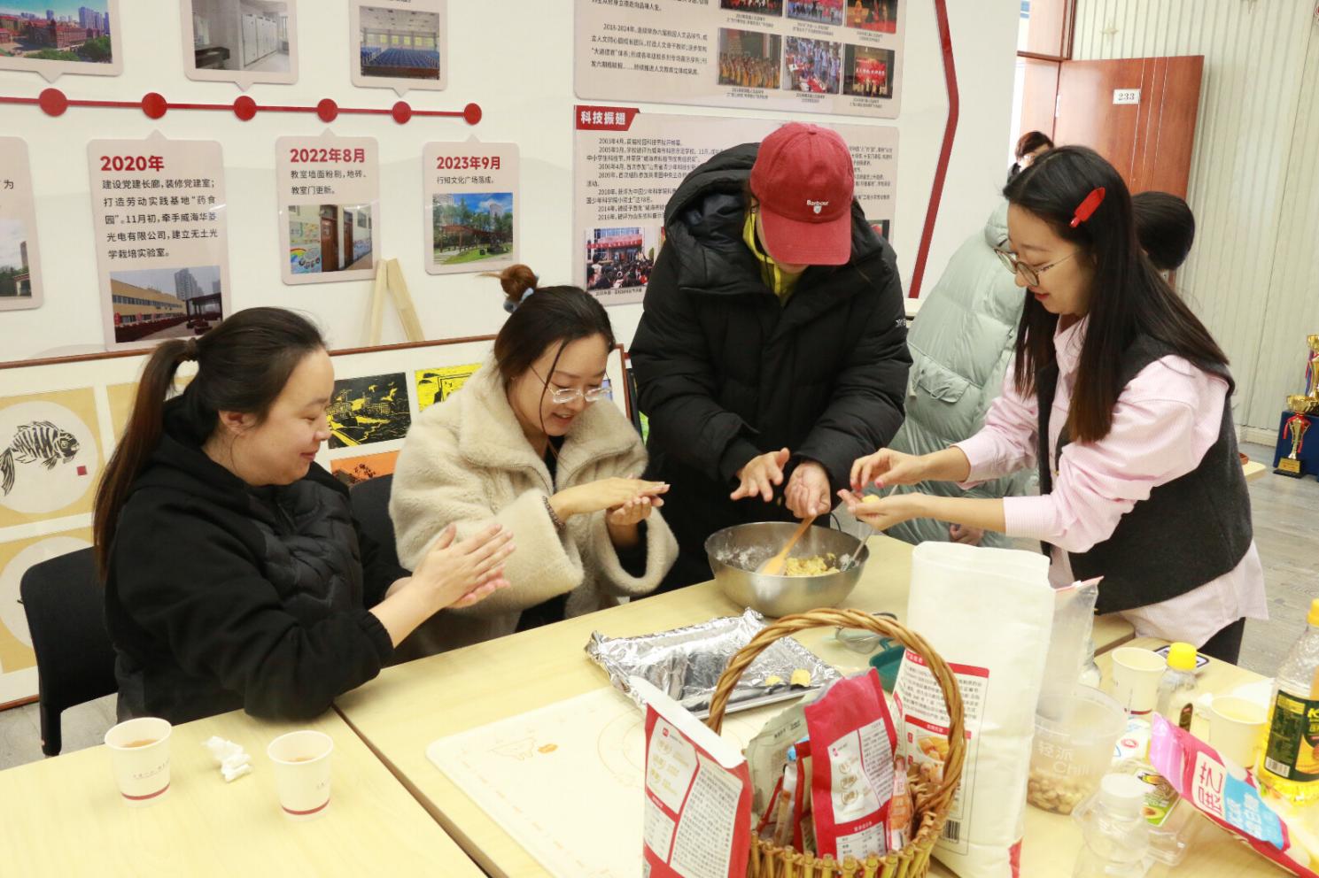 指尖流转,创意无限。在手工创作环节,学校为女教师们准备了丰富多彩的体验项目。微景观DIY现场,大家巧手制作,构建出一个个妙趣横生的“微型世界”;为迎接即将到来的马年,非遗风铃制作格外引人注目,老师们将传统绳结与铃铛巧妙结合,寄托了美好的祝愿;低糖烘焙区则香气四溢,大家化身“甜点大师”,在动手体验中收获甜蜜与美好。一件件独具匠心的作品,不仅展现了女教师们的审美情趣,更传递了她们热爱生活、积极向上的精神风貌。
