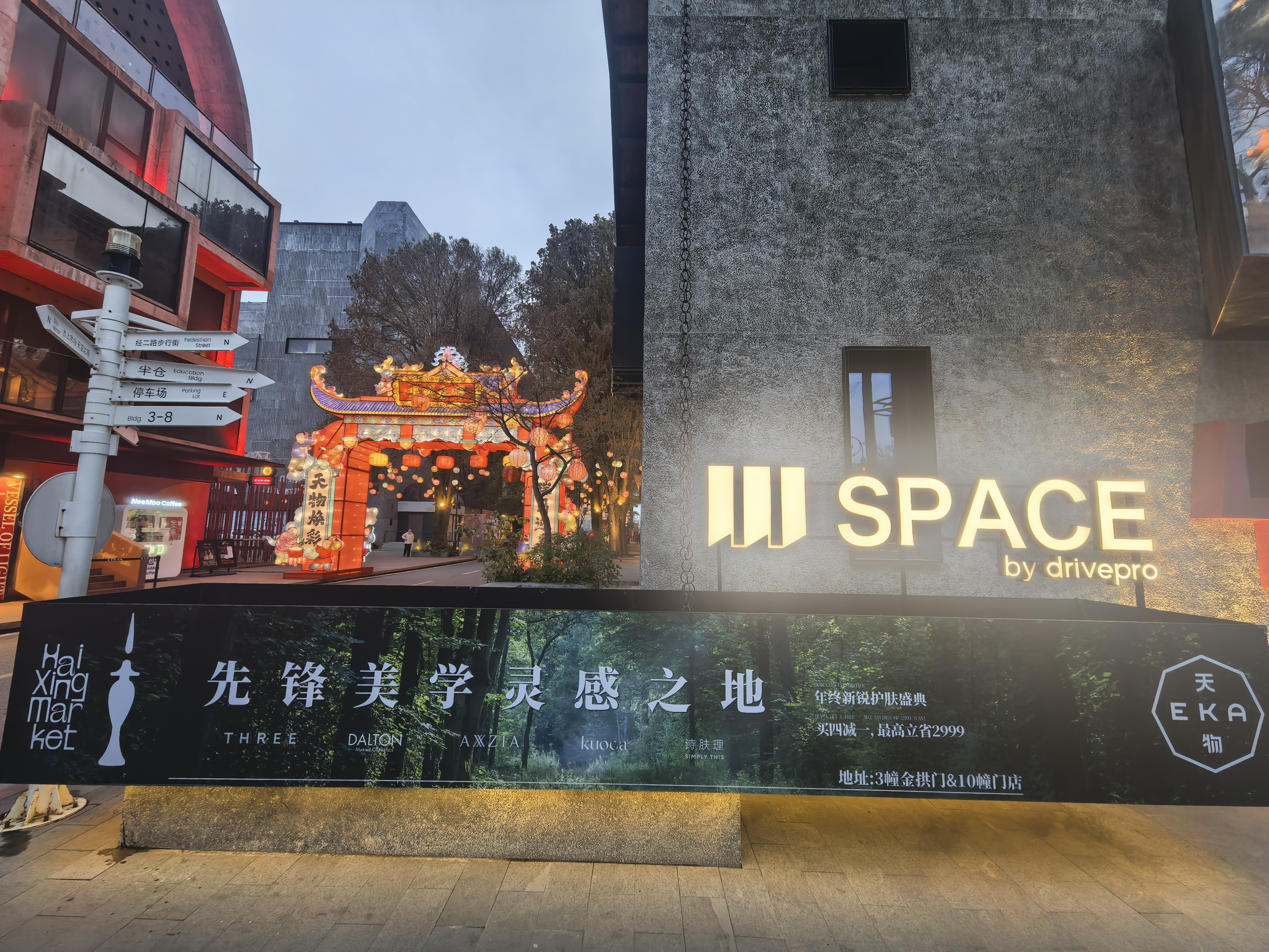 这是我2026年第二次来EKA·天物。与上次走马观花式的视觉体验和深得我心的初步印象相比,此次最大的感触在于——它没有把历史封存在原来的场域里,而是让过去与未来在同一个空间里并存,让生锈的机器、百年的古树和崭新的铜墙铁壁共生。它的硬核是坚不可摧的工业骨骼,它的浪漫则来自设计师把冷硬的机器变成了诗。走在里面,能同时闻到红砖的尘土味和咖啡的香气,听到老机器的回声和电子音乐的节拍。空气中弥漫着咖啡与复古气息混合的芬芳,耳边是远处传来的爵士乐,与脚下石板路的回响交织成一首无言的诗。这里不仅是视觉的盛宴,更是一场关于“松弛感”的疗愈仪式。