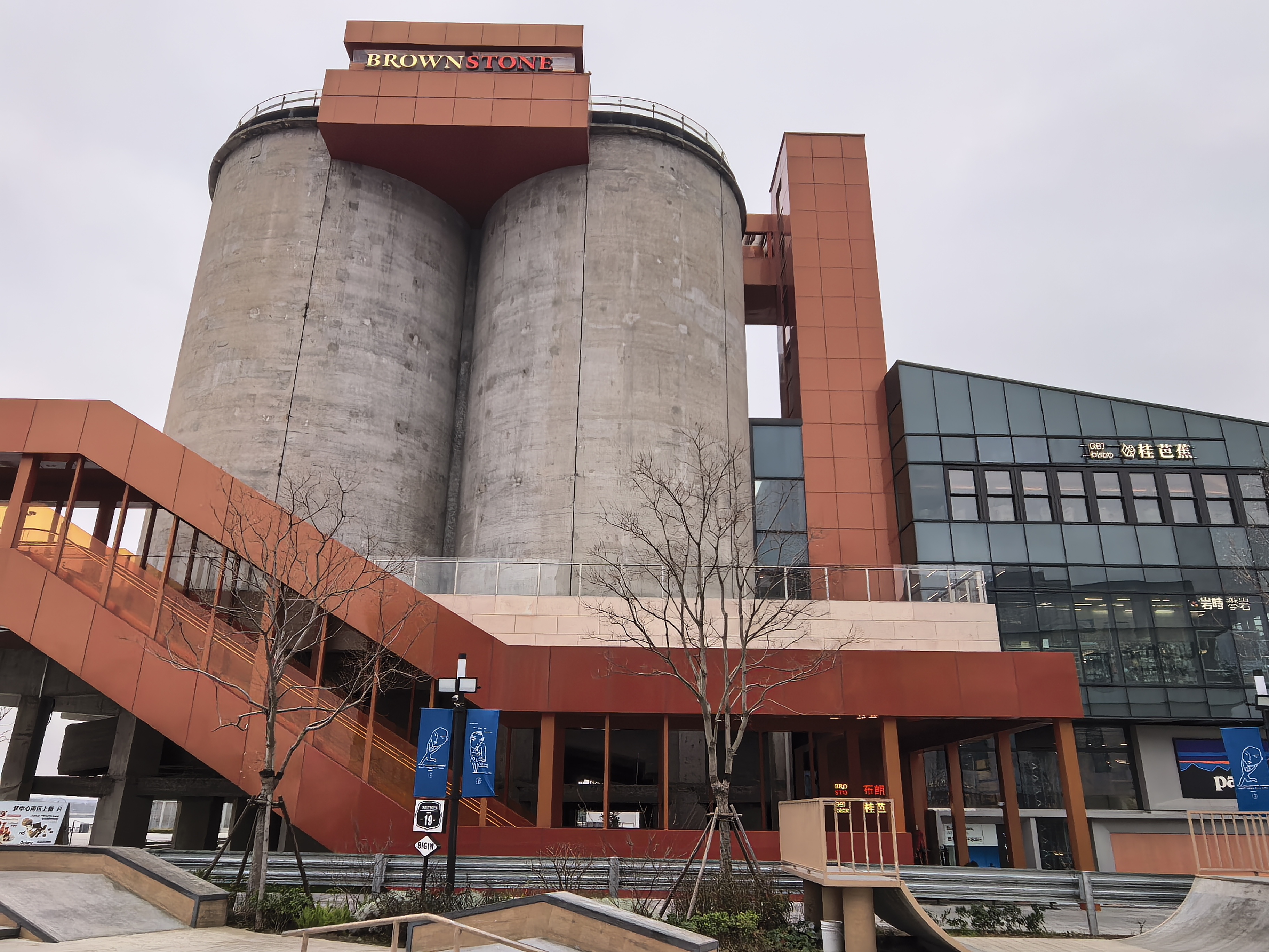 西岸梦中心位于徐汇滨江龙腾大道,前身为有着“远东第一大”之称的上海水泥厂旧址,拥有约800米滨江岸线。项目总建筑面积16.2万平方米,保留了1.4万平方米工业遗存。站在江边,望着由老水泥厂筒仓、船坞改造而成的建筑,不禁让人感叹——这里曾是亚洲规模最大的水泥厂,如今却化身为上海最时髦的潮流地标。巨大的水泥筒仓保留着斑驳的肌理,仿佛在诉说着百年前的工业辉煌,而顶部却已建起了现代化的观景台;曾经的卸货码头变成了充满艺术感的露天剧场。这种“新旧共生”的奇妙体验,正是西岸梦中心最打动我的地方。它没有刻意抹去过去的痕迹,而是将工业遗产的厚重与当代生活的轻盈完美融合。