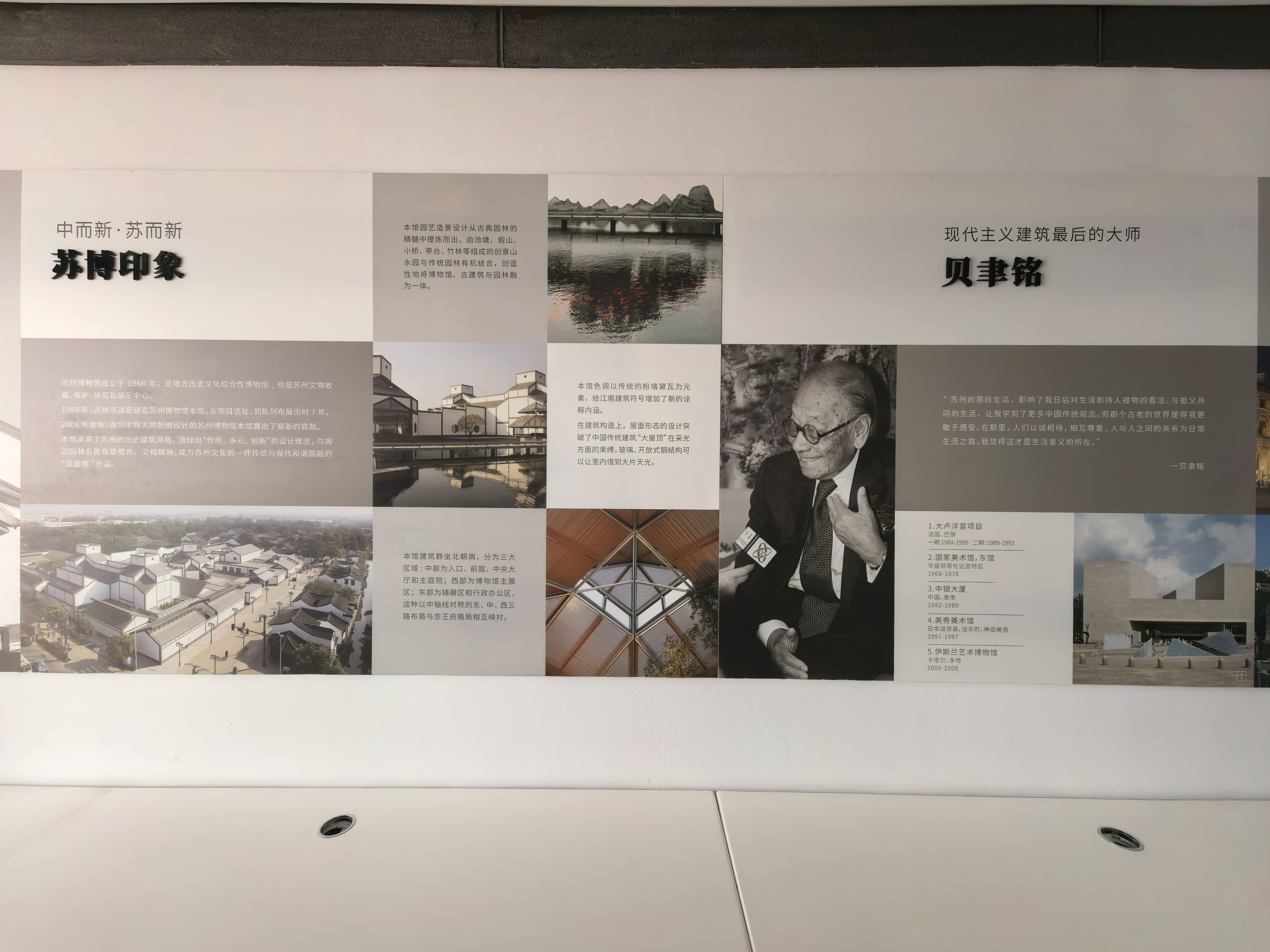 苏州博物馆的选址,紧邻太平天国忠王府和拙政园。参观完现代感十足的新馆,穿过一道门,就进入了古色古香的忠王府。这种“一步千年”的穿越感,让你瞬间理解了贝聿铭所说的“中而新,苏而新”的设计理念:传统不是包袱,而是创新的源泉。新馆的几何天窗与忠王府的雕梁画栋隔墙相望,仿佛两个时代在无声对谈——而贝聿铭,正是那位最从容的译者。