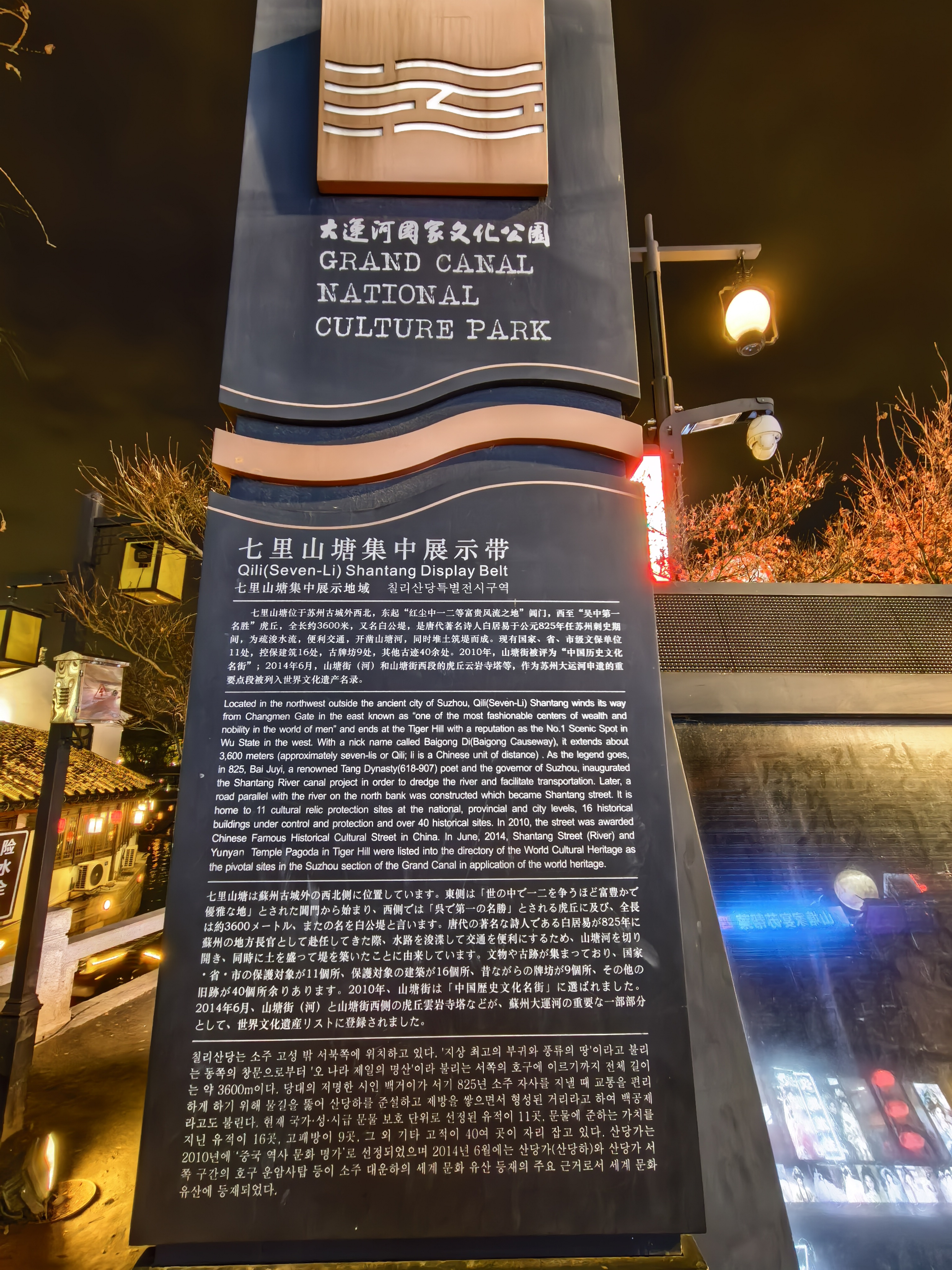 没有白日的拥挤与燥热,夜晚的山塘多了几分慵懒与闲适。晚风拂面,走在这样的古街上,仿佛穿越回了旧时光。作为“姑苏第一名街”,这里曾是苏州最繁华的地段,康熙、乾隆下江南都必经此地。闭上眼,依然可以想象得到白居易当年“银勒牵骄马,花船载丽人”的盛世景象。