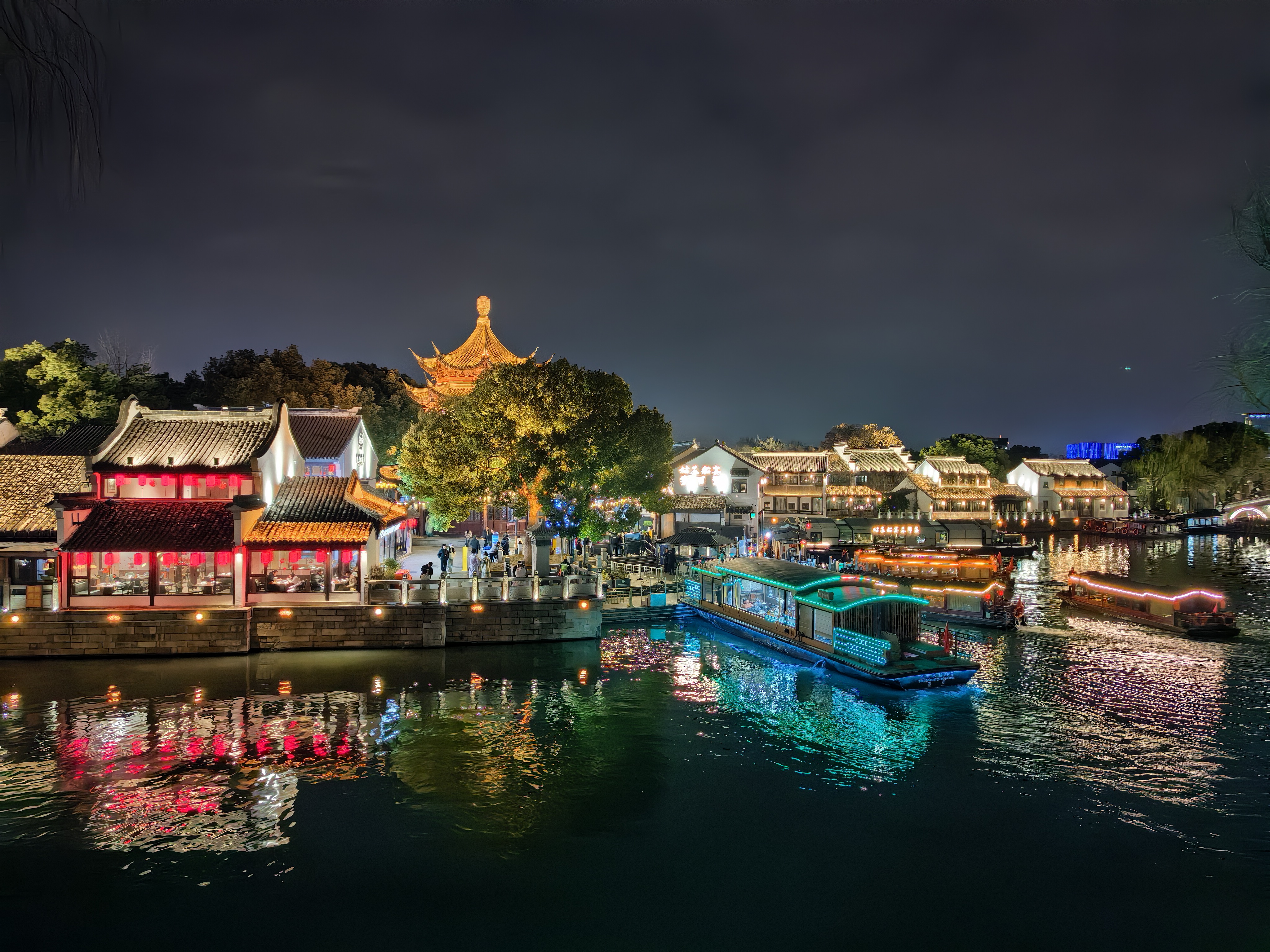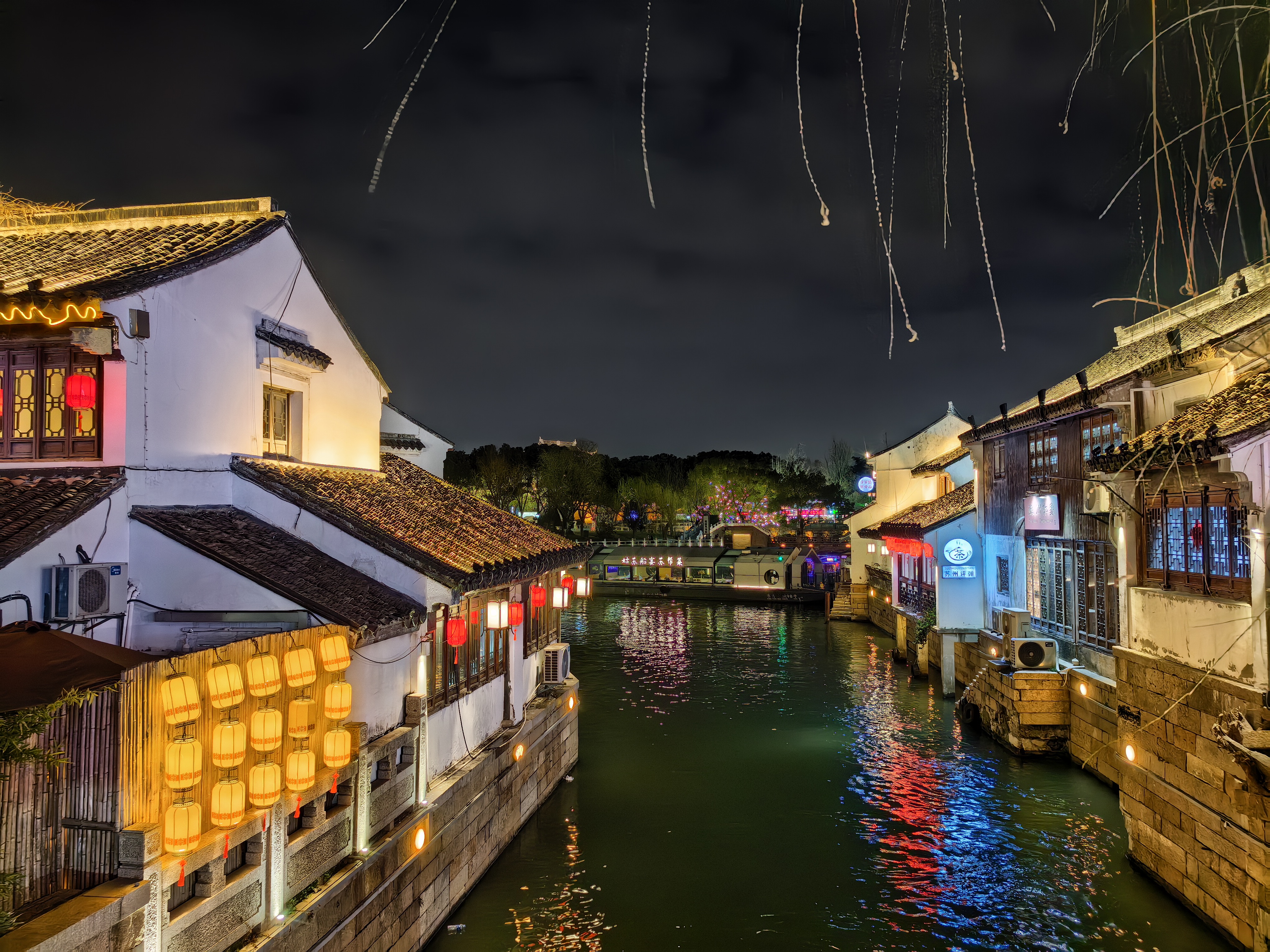 灯火阑珊,流水悠悠,吃了苏式面,赏了江南景——这大概就是一个寻常夜晚最不寻常的惬意了吧。