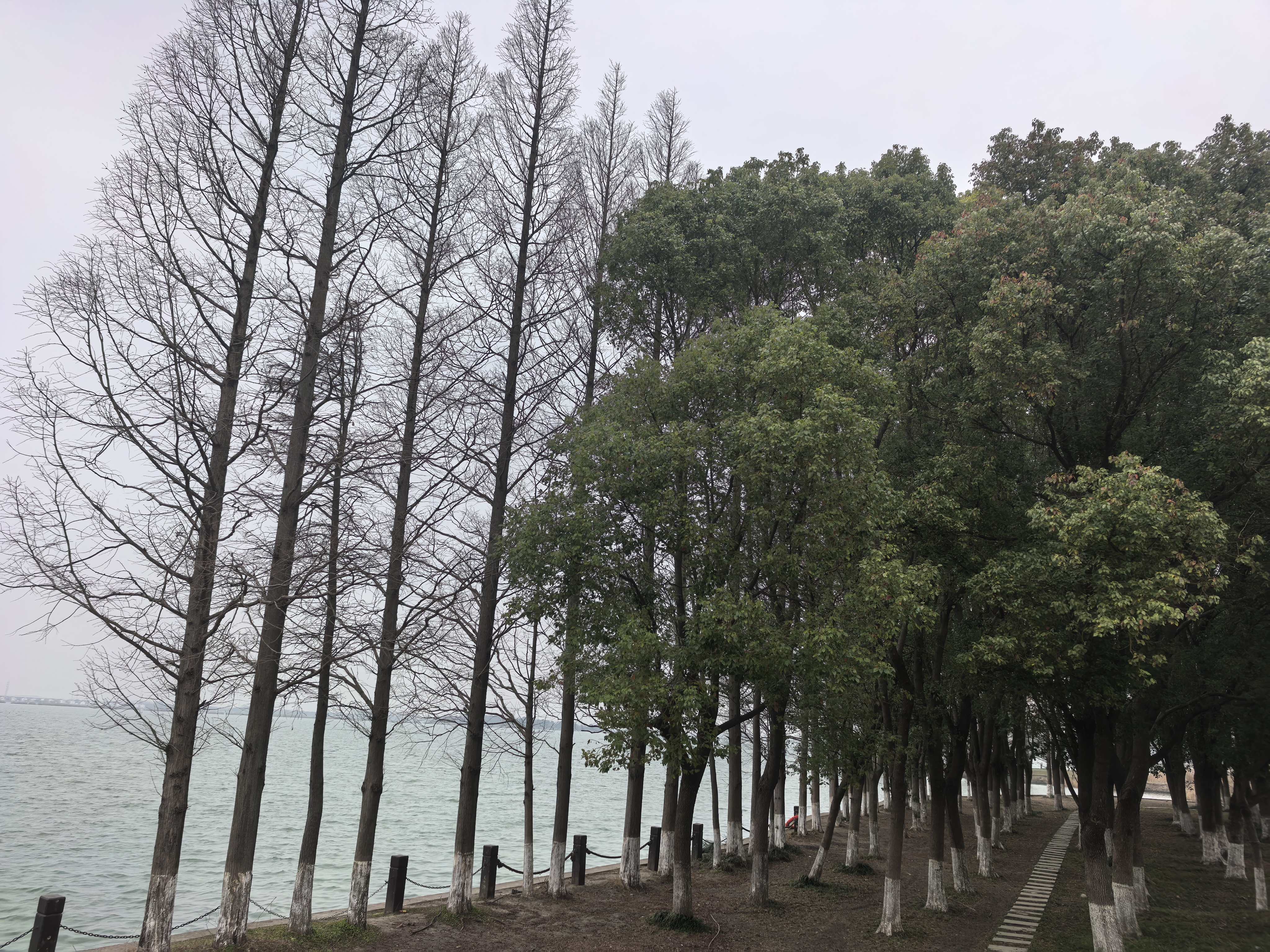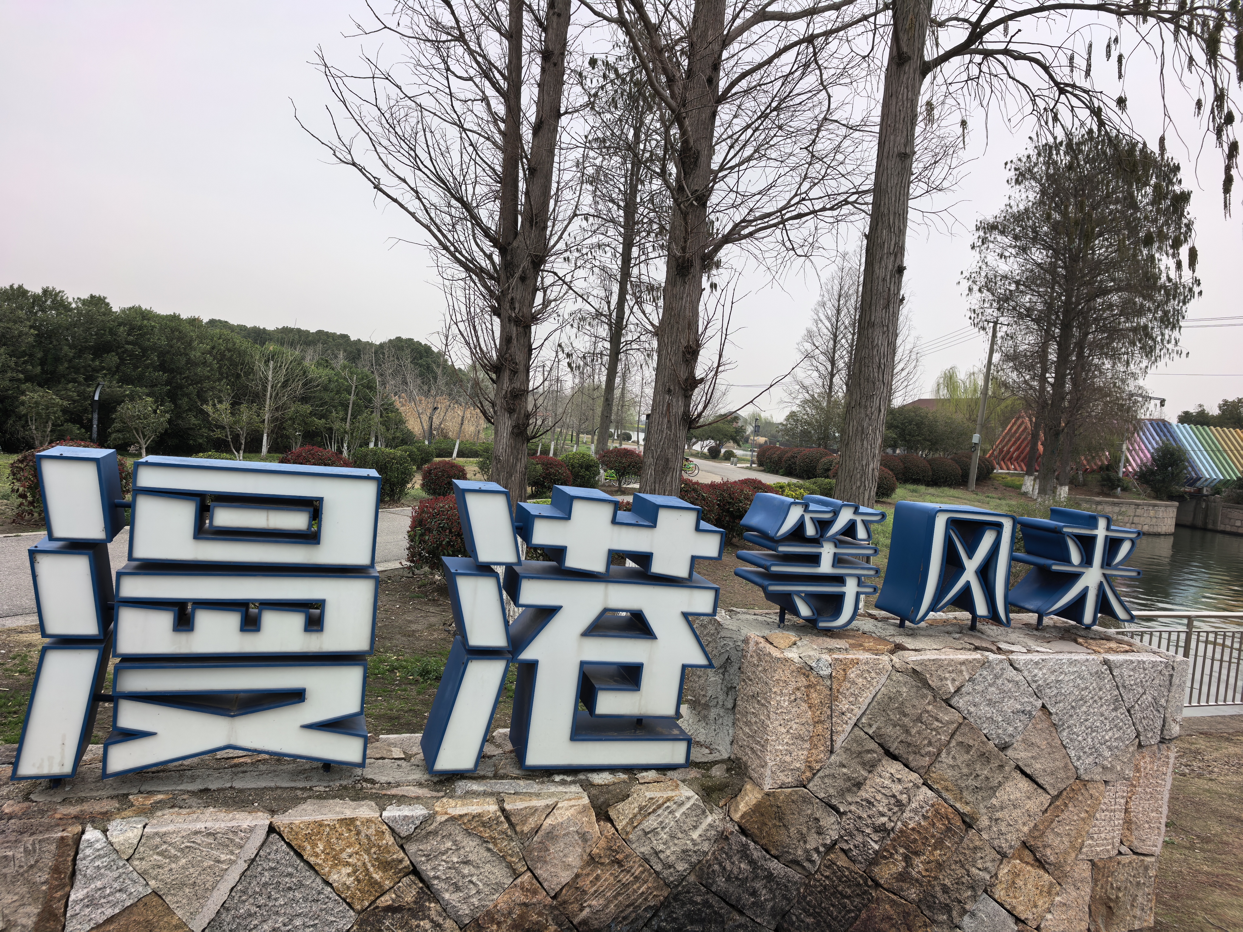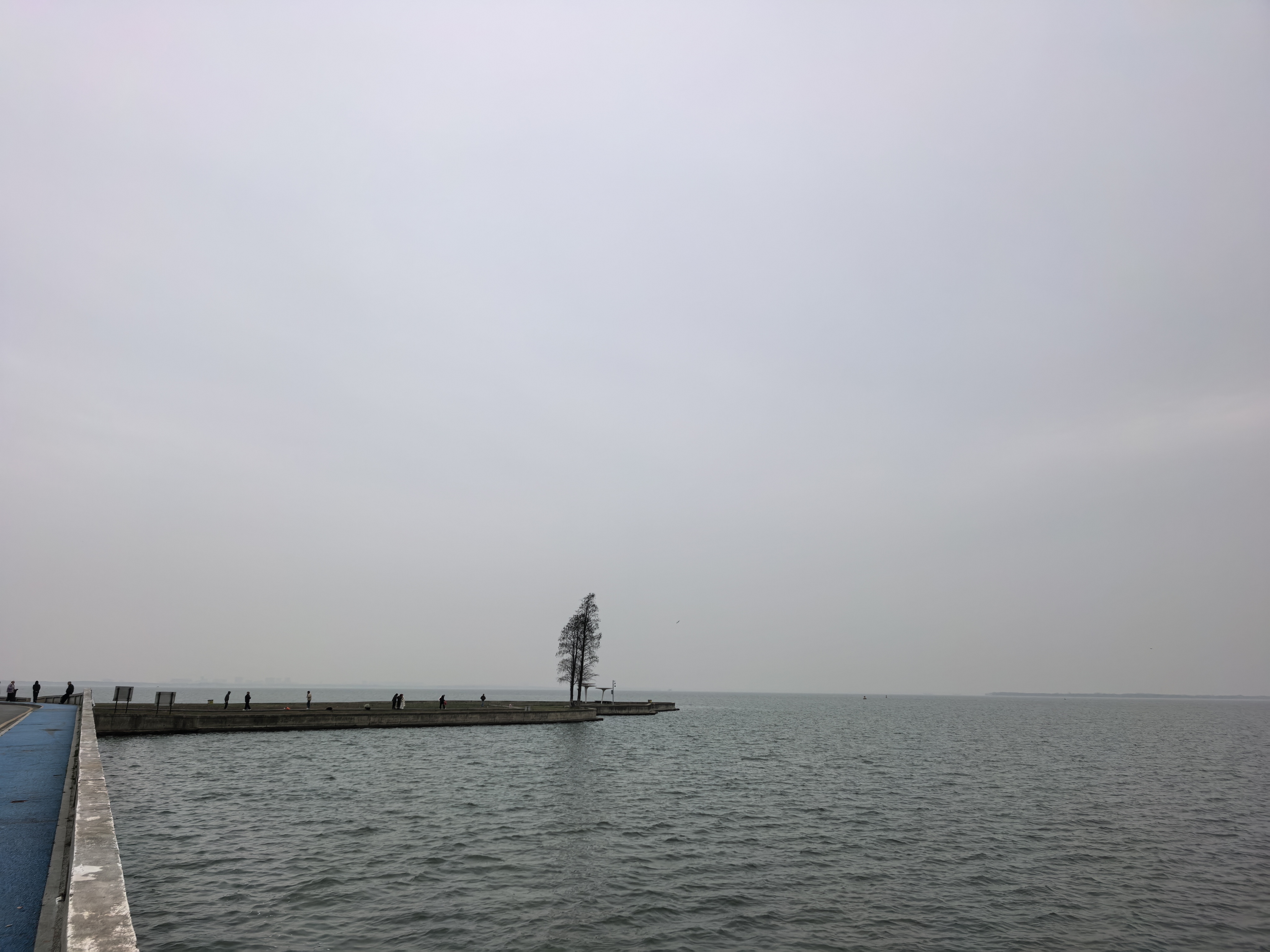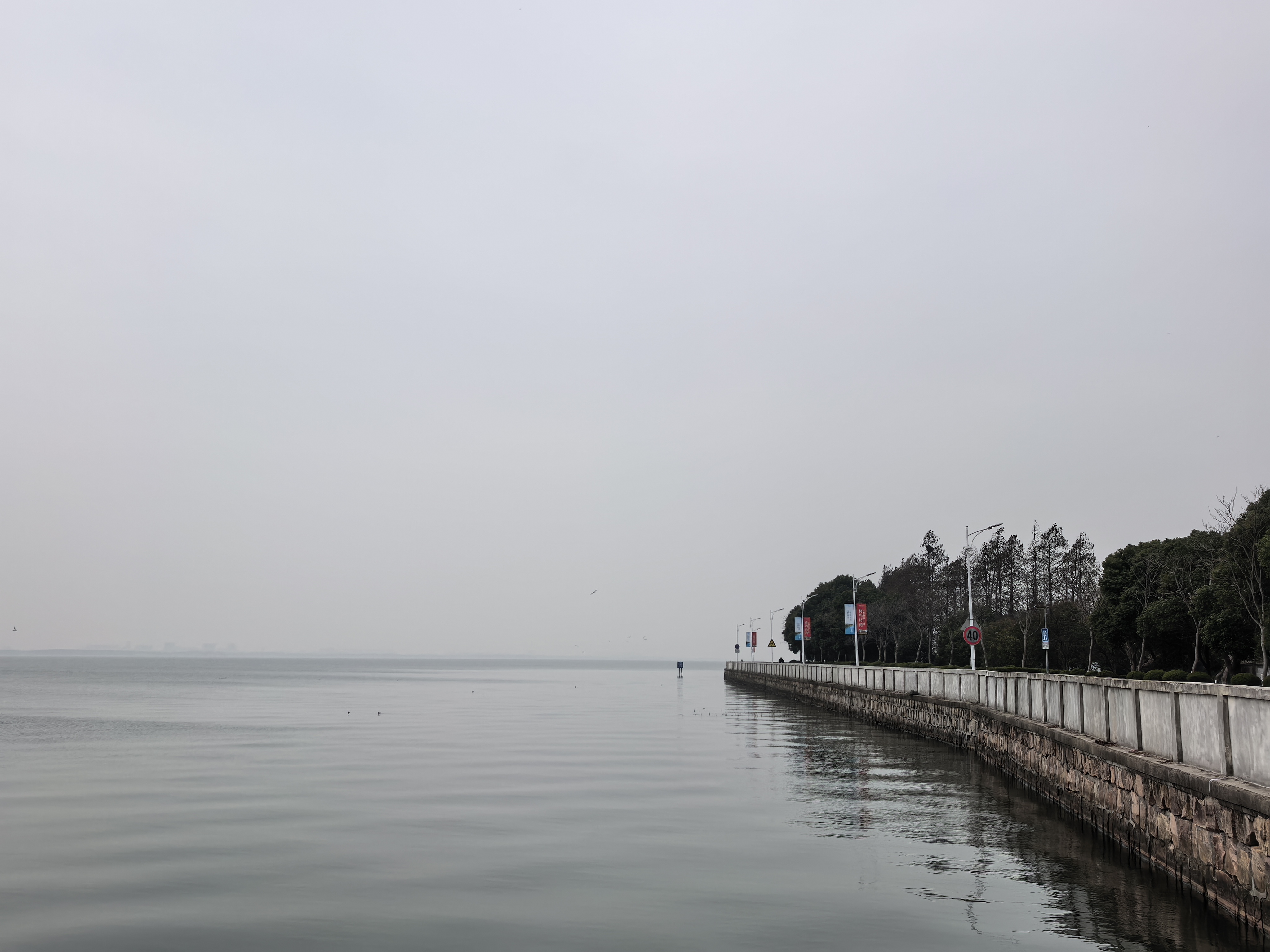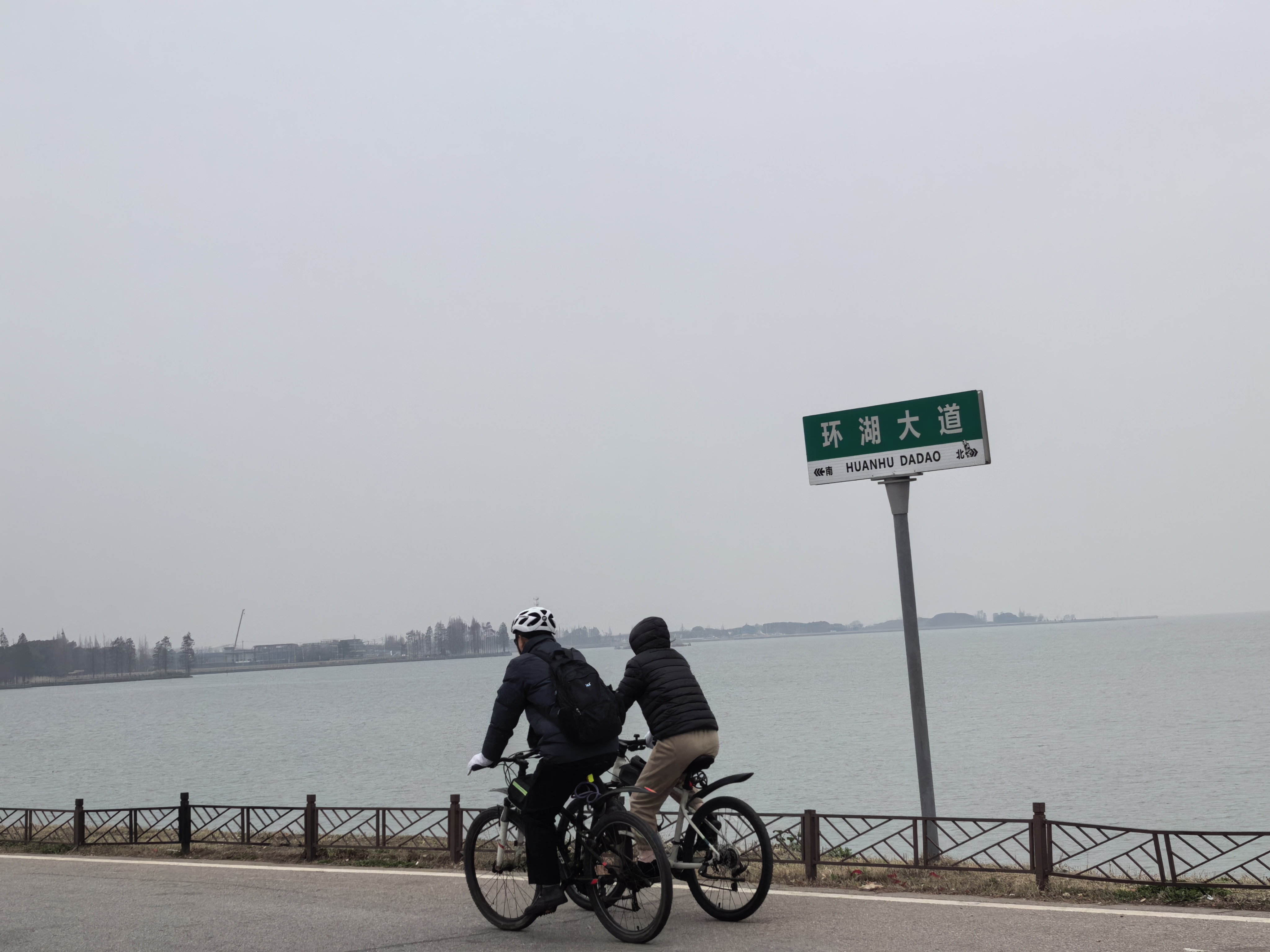 告别金鸡湖的精致繁华,继续前行,来到了淀山湖。驱车驶入环湖大道,眼前的世界瞬间变得开阔——没有城市高楼的拥挤,没有喧嚣人群的纷扰,一条干净舒展的公路沿着湖岸蜿蜒延伸,左手是无边无际的湖水和天际线,右手是连绵的绿意与田园风光,风从湖面轻轻吹来,整个人都被一种松弛而自由的氛围包裹,那是初春特有的、空气中微微带着冷意的爽快与清冽。
