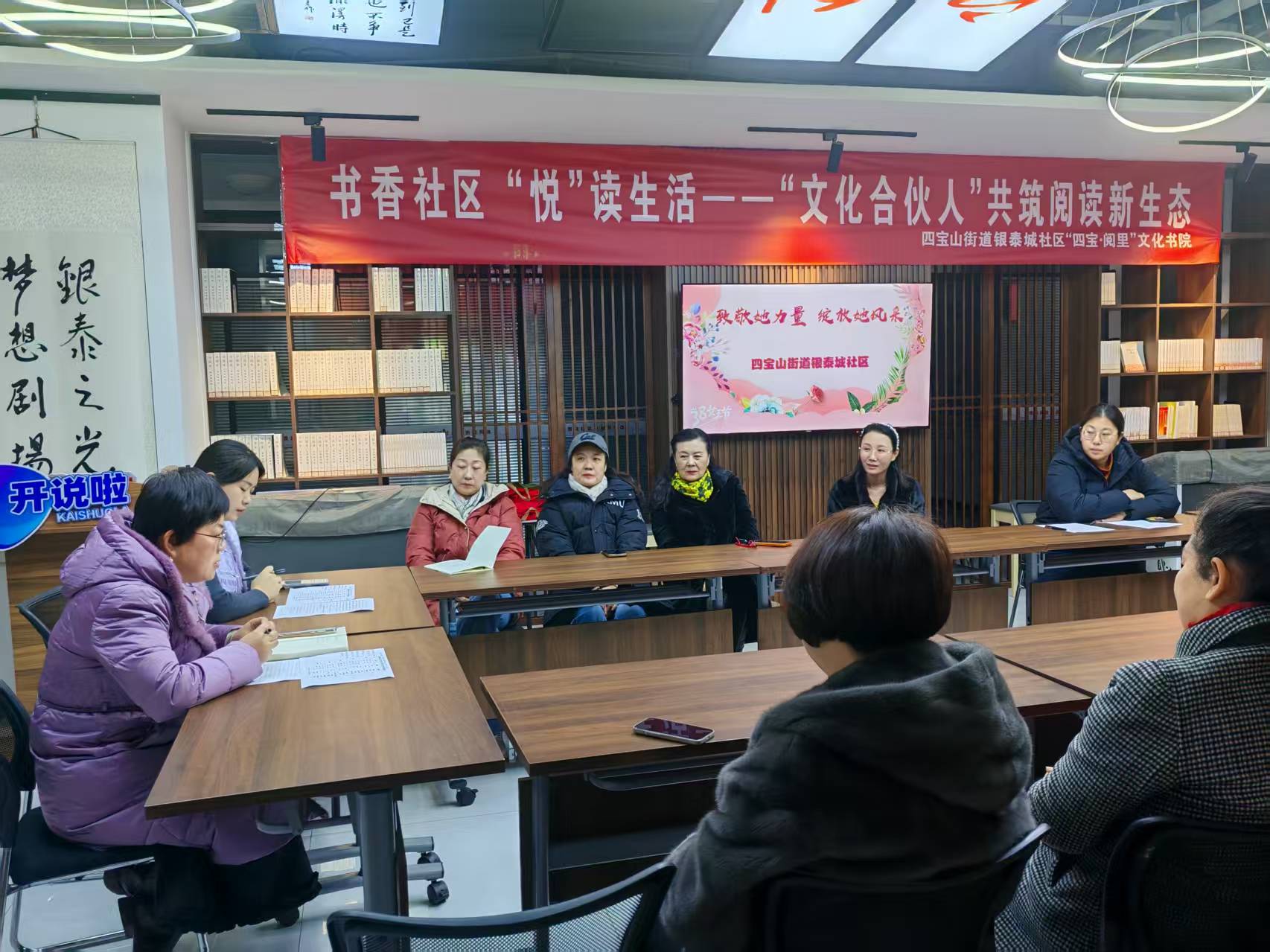 3月8日,淄博高新区四宝山街道银泰城社区“四宝·阅里”文化书院举办“致敬她力量 绽放她风采”“三八”妇女节座谈会。会议聚焦2026年社区文化服务升级目标,提出深化特色课程、打造品牌团队、凝聚志愿合力等多项举措,助力建设和谐社区。